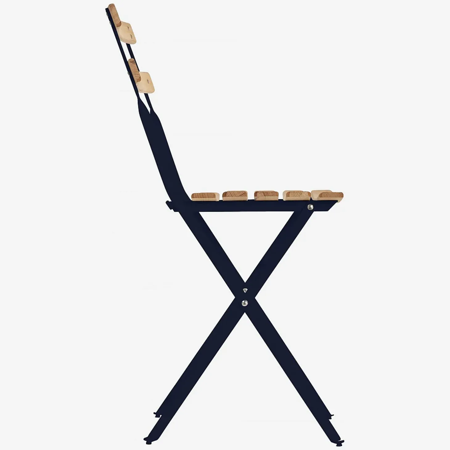 La chaise de jardin Parc en hêtre naturel et acier bleu foncé est une chaise au design minimaliste. Très pratique, cette chaise se plie pour un rangement facile.