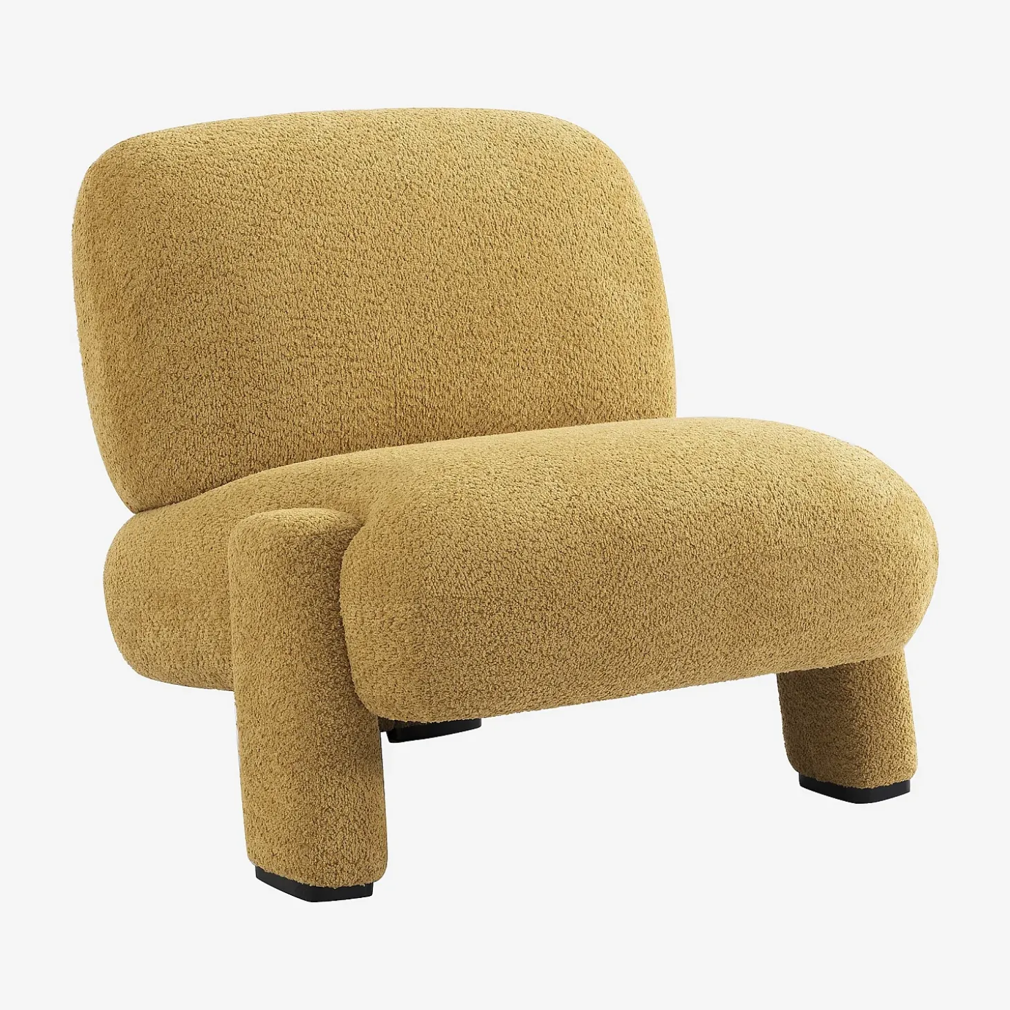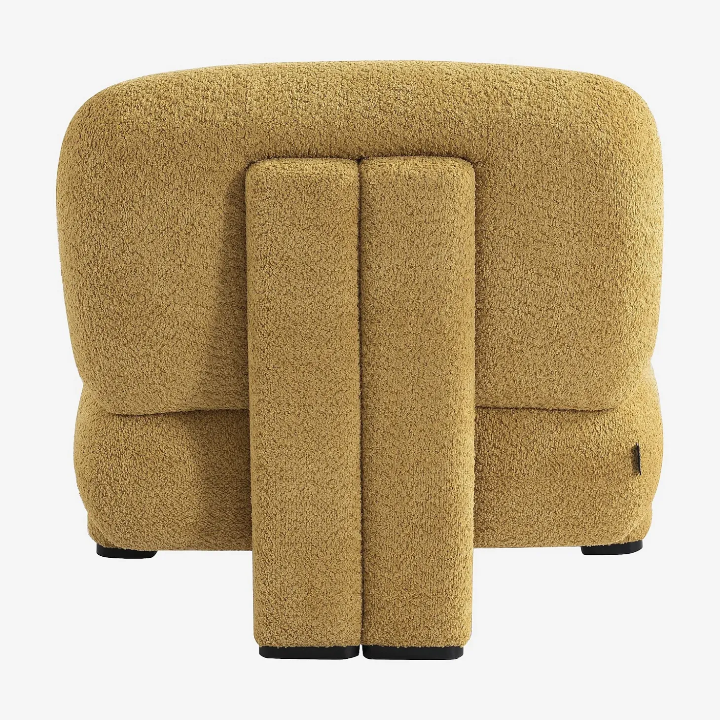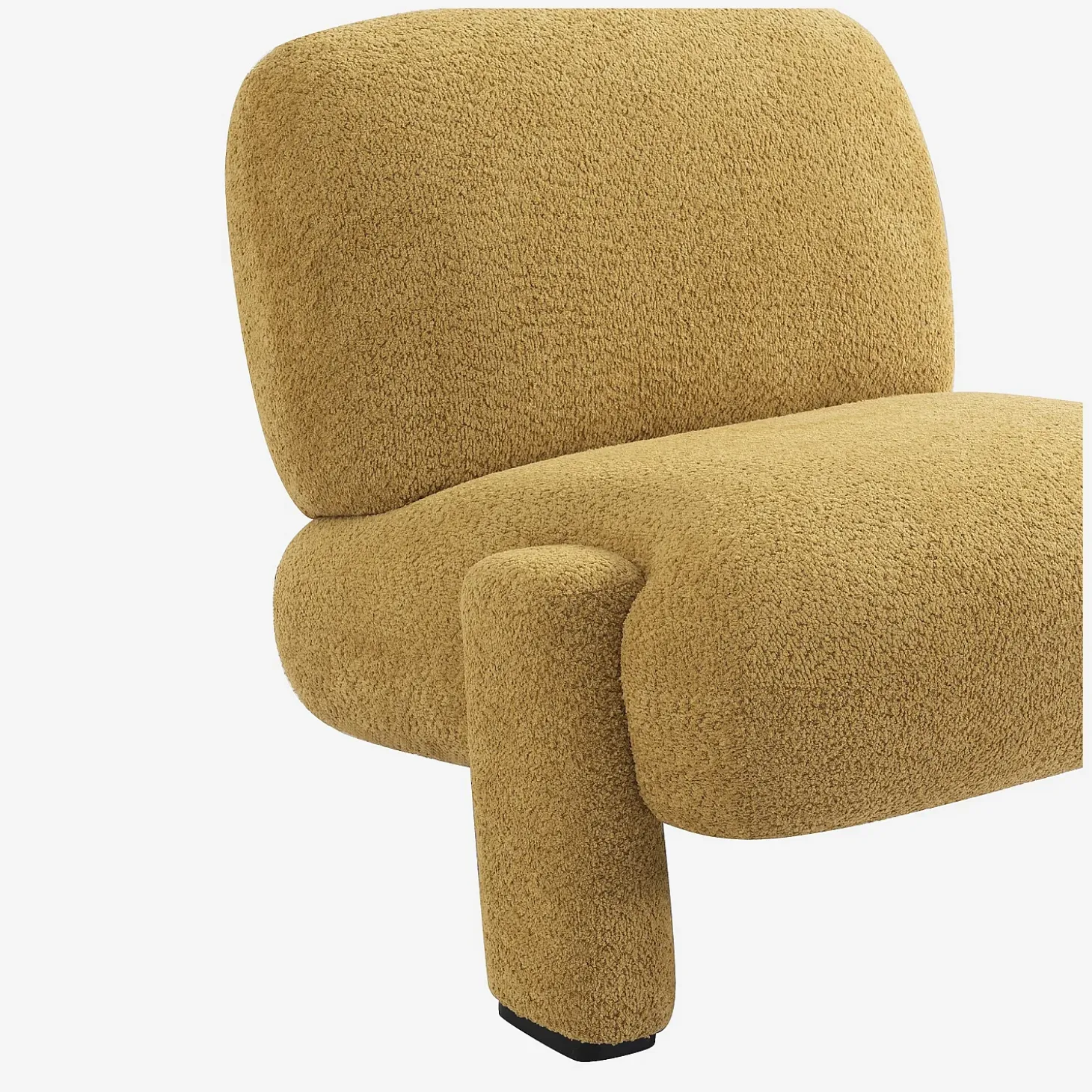 Revêtu d’un tissu bouclette miel au toucher chaleureux, il séduit par une allure douce et rayonnante. Ses lignes arrondies et sa posture légèrement inclinée invitent naturellement à la détente.