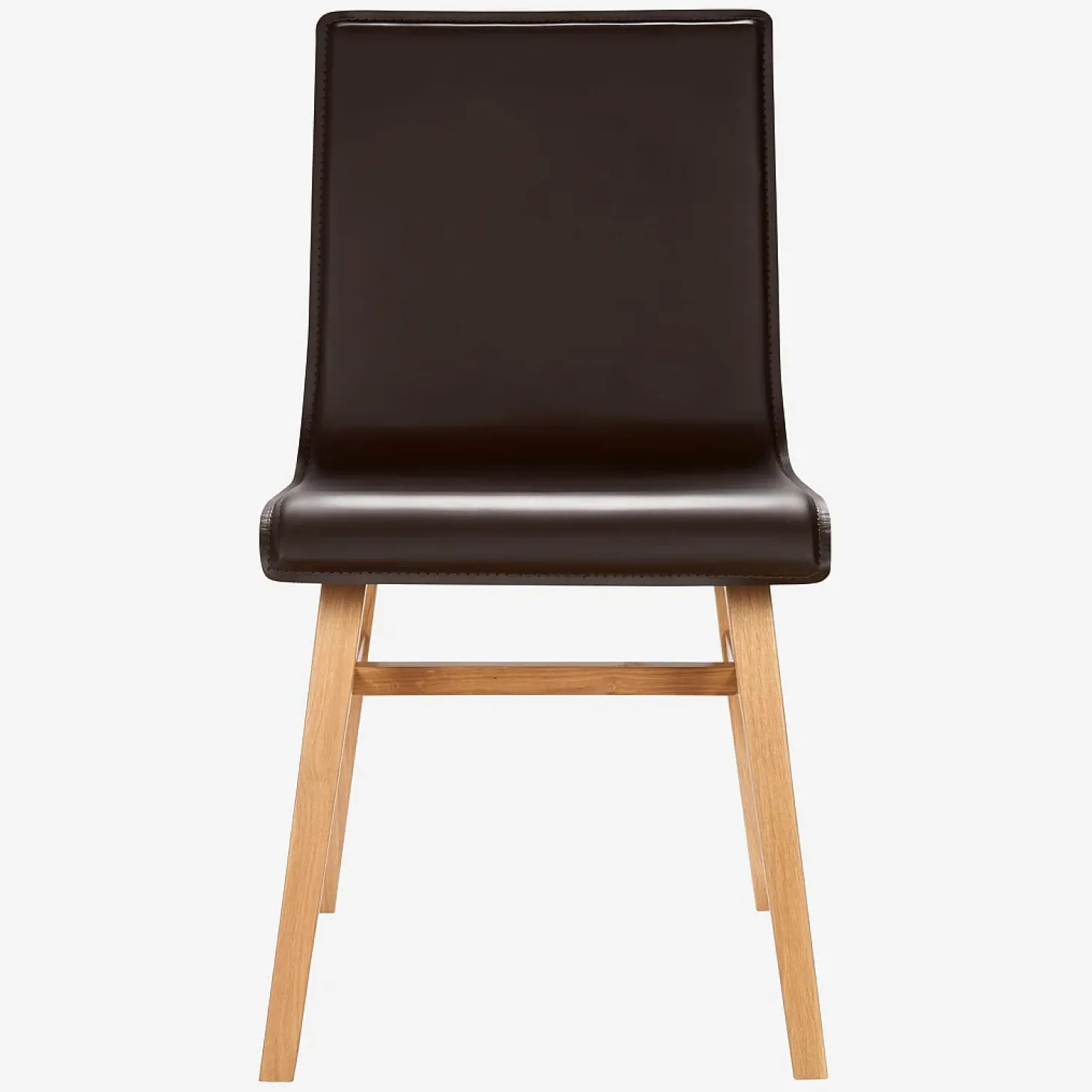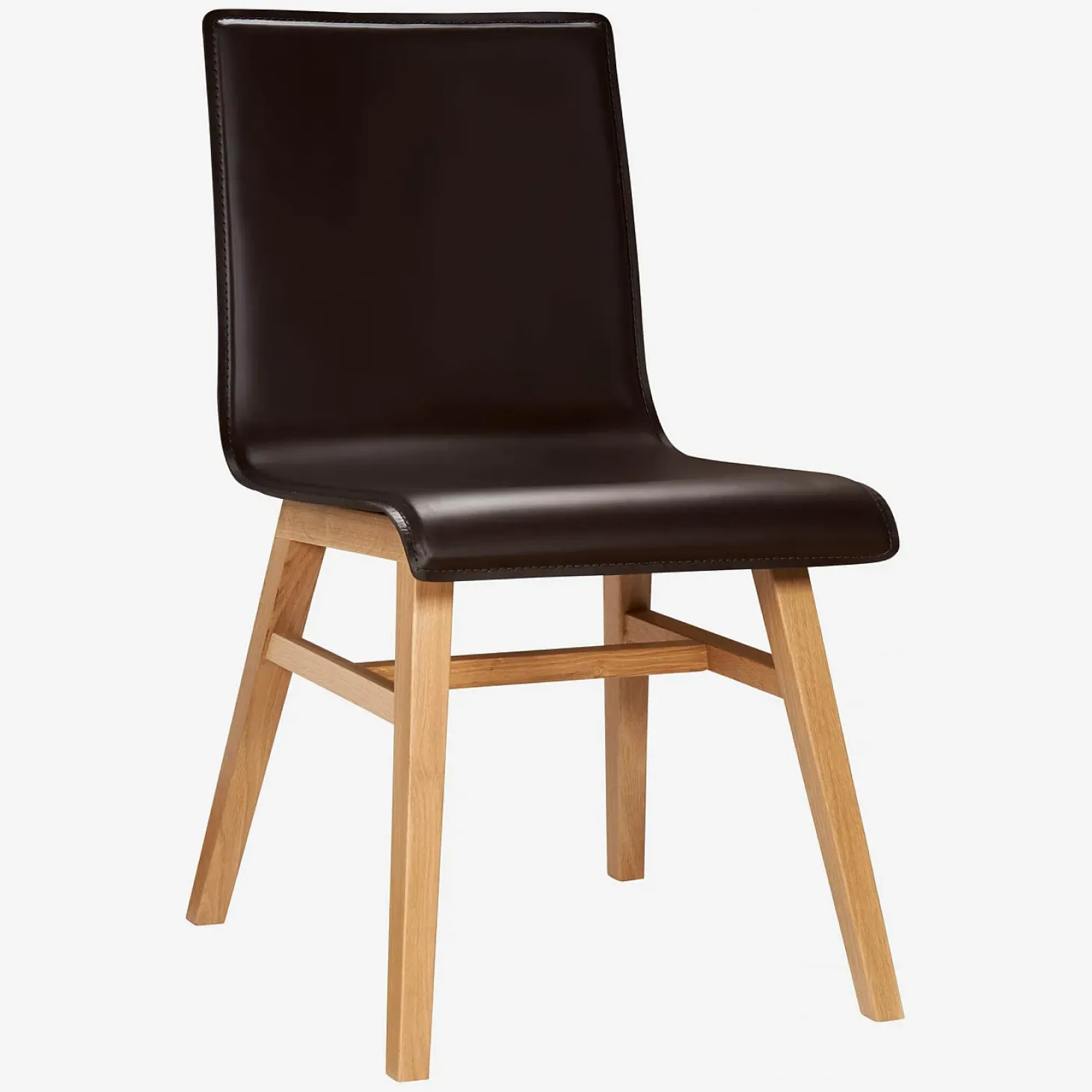 D’inspiration scandinave, la chaise Ply III en cuir marron affiche des lignes sobres et épurées, sur un piétement architecturé en chêne massif huilé, pour un rendu très naturel. Elle est fabriquée en Europe.
