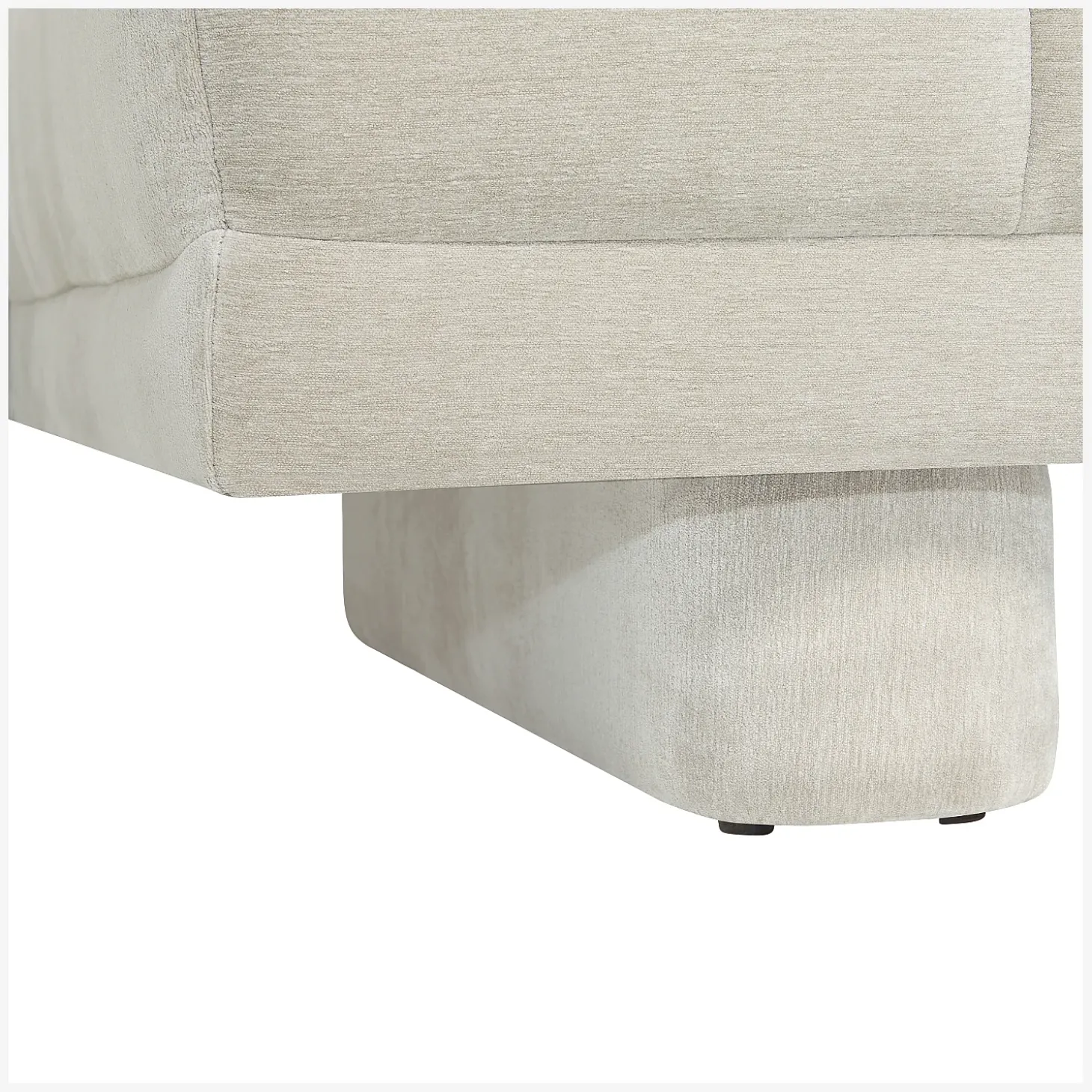 Revêtu d’un délicat tissu grège, il révèle une teinte douce qui ajoute une touche de sérénité à un intérieur.