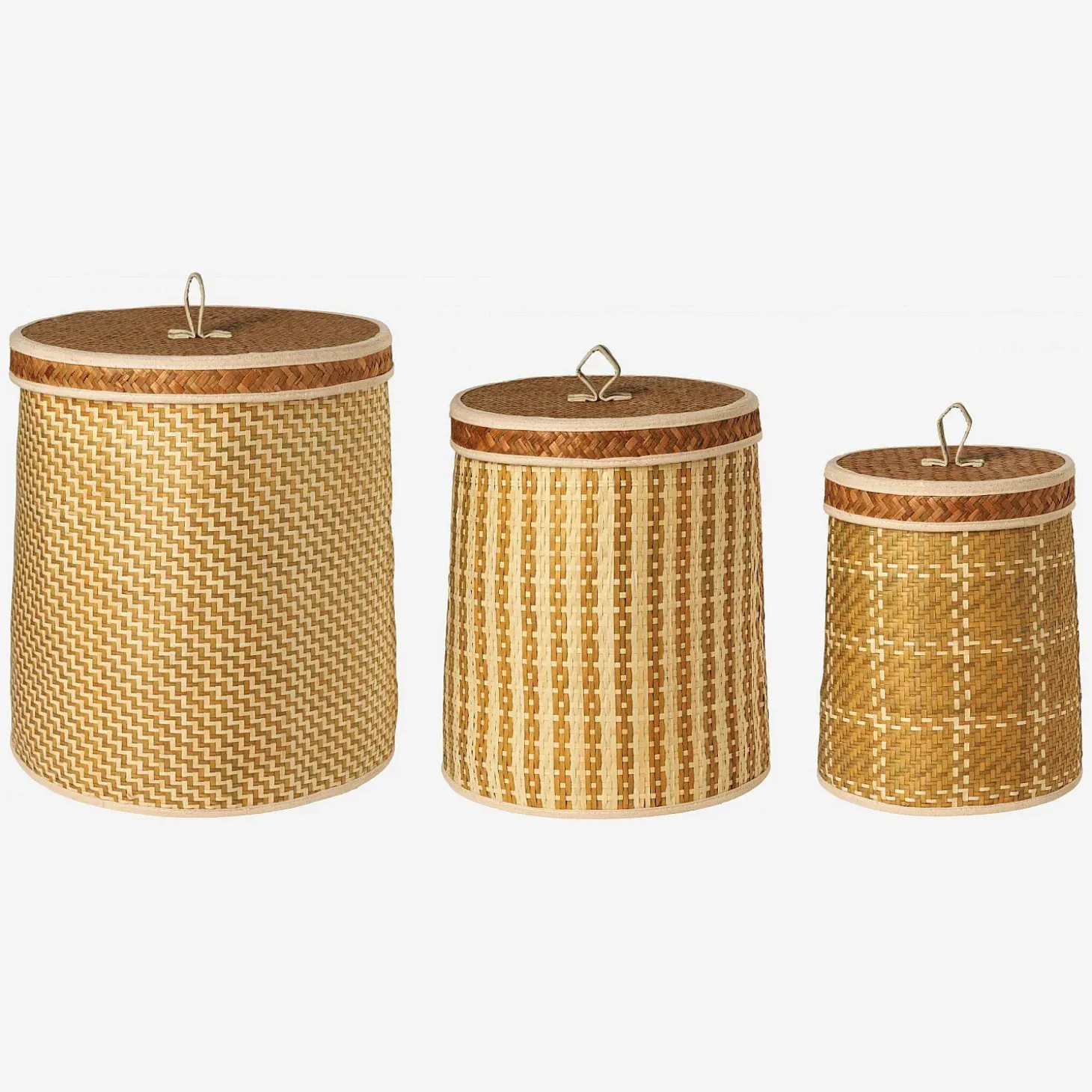Le lot de paniers ronds Poly avec couvercles se compose de trois paniers de 35 x 41 cm, de 31 x 38 cm et de 24 x 28 cm. De couleur blanche et naturelle, ils vous aident à mieux organiser vos placards. Ils sont parfaits pour les souvenirs et les accessoires tels que des foulards, bijoux fantaisies ou câbles de téléphone.