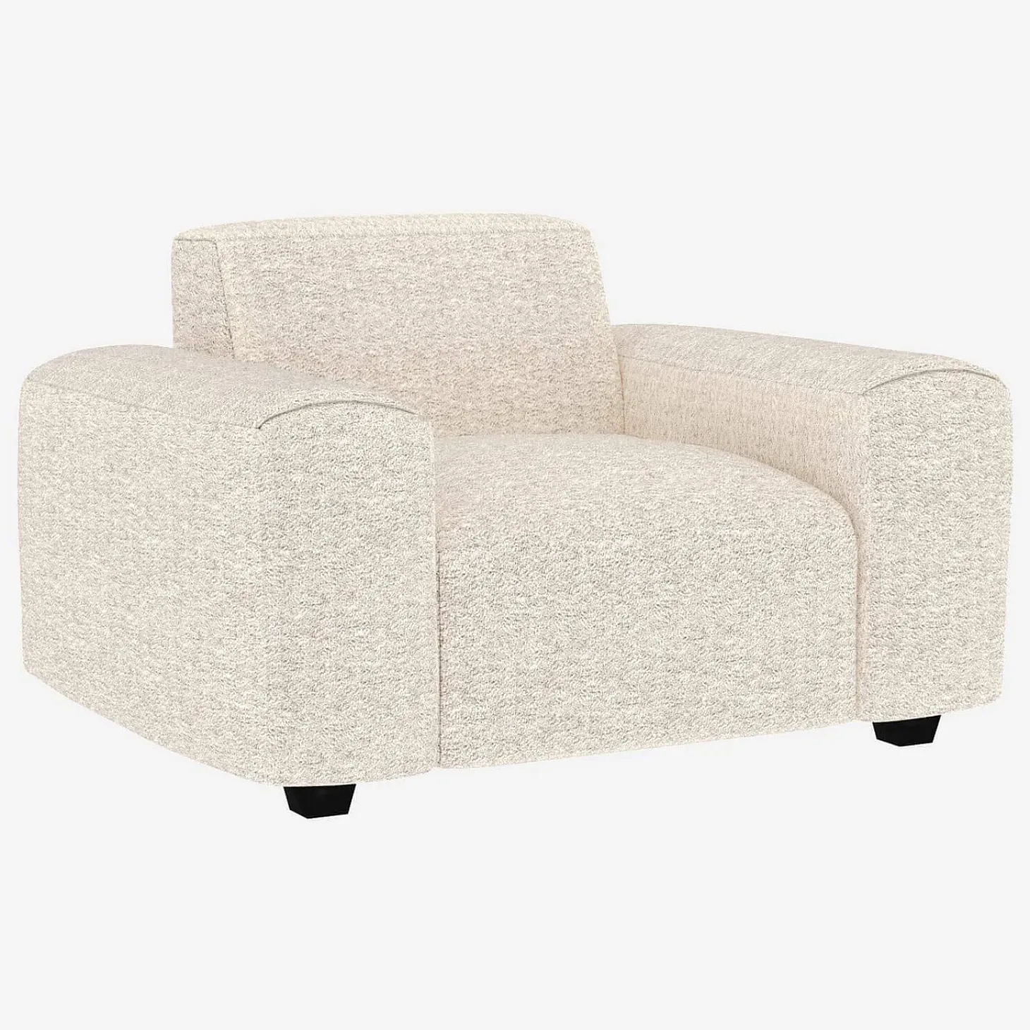 **Fabriqué en Europe**Assise généreuse, accoudoirs rembourrés et tissu bouclette composent un fauteuil au charme enveloppant. Une pièce intemporelle au confort moelleux, idéale pour sublimer un salon ou un coin lecture.
