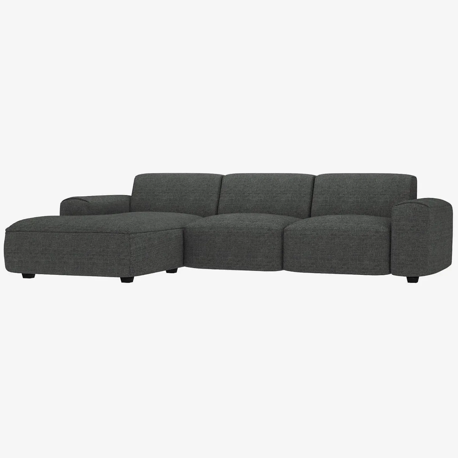 Le canapé d’angle gauche Posada en tissu Melina gris ardoise est un canapé d’une grande élégance. Son design soigné se retrouve dans ses coutures et les finitions en ourlet de ses accoudoirs.