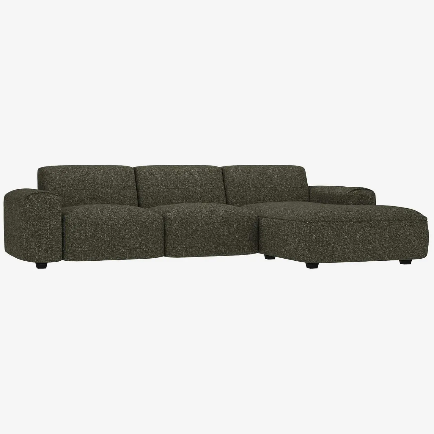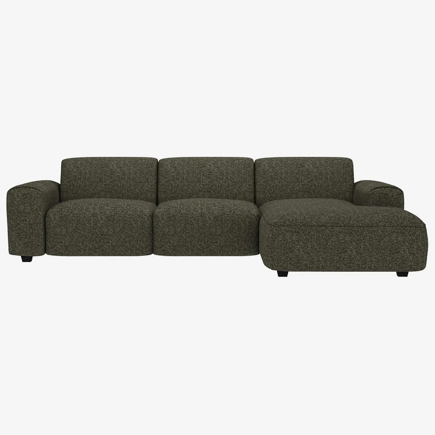 Le canapé d’angle droit Posada en tissu Lucca vert mousse est un canapé d’une grande élégance. Son design soigné se retrouve dans ses coutures et les finitions en ourlet de ses accoudoirs.