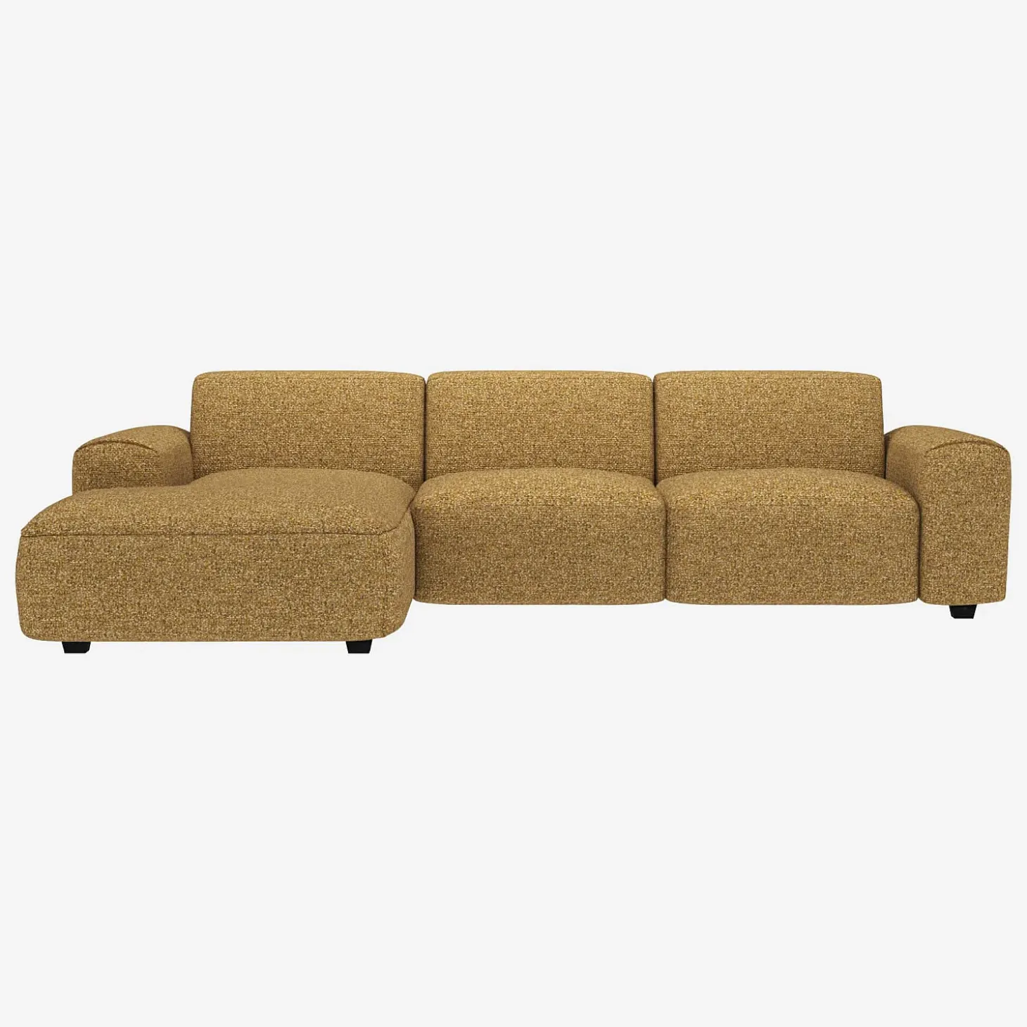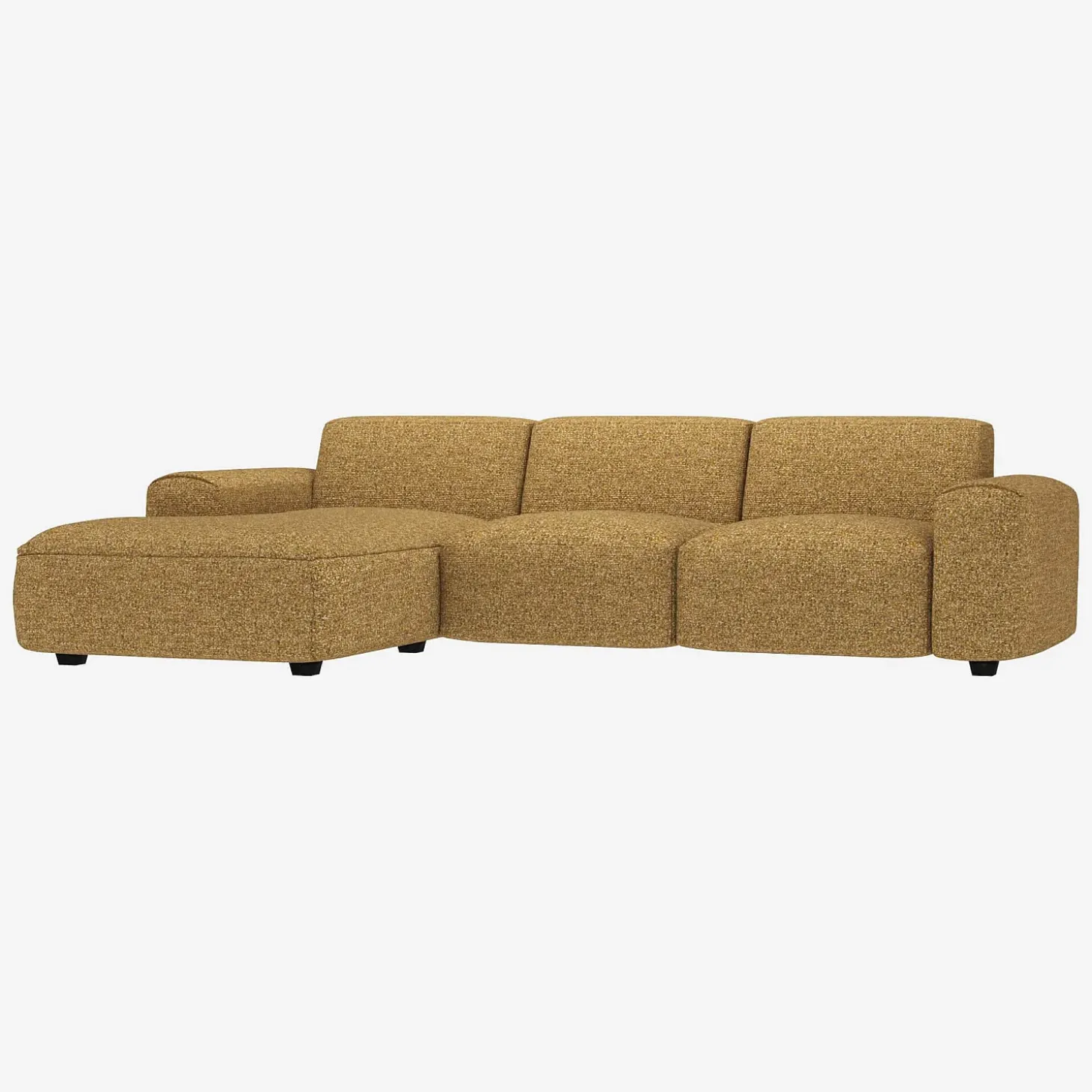 Le canapé d’angle gauche Posada en tissu Venezia jaune épice est un canapé d’une grande élégance. Son design soigné se retrouve dans ses coutures et les finitions en ourlet de ses accoudoirs.