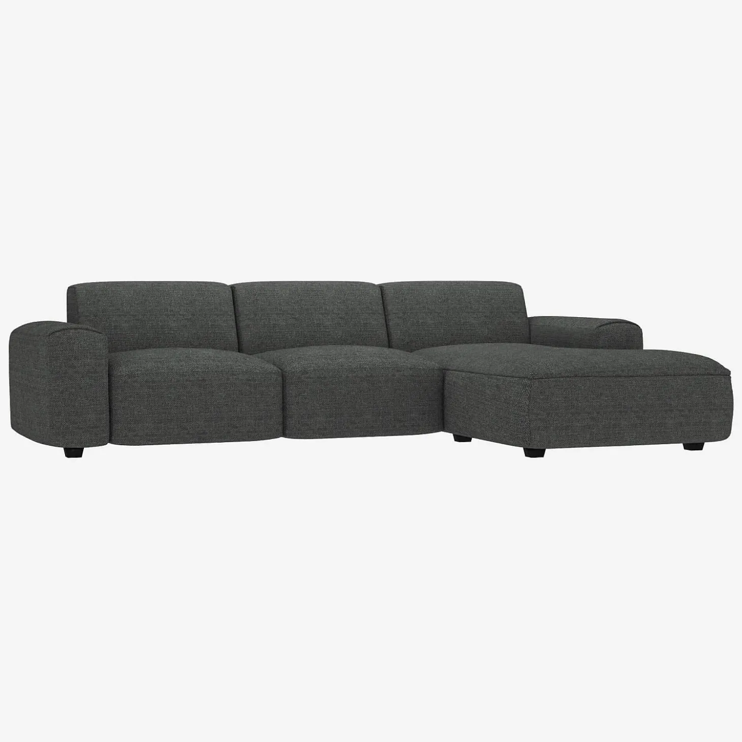Le canapé d’angle droit Posada en tissu Melina gris ardoise est un canapé d’une grande élégance. Son design soigné se retrouve dans ses coutures et les finitions en ourlet de ses accoudoirs.