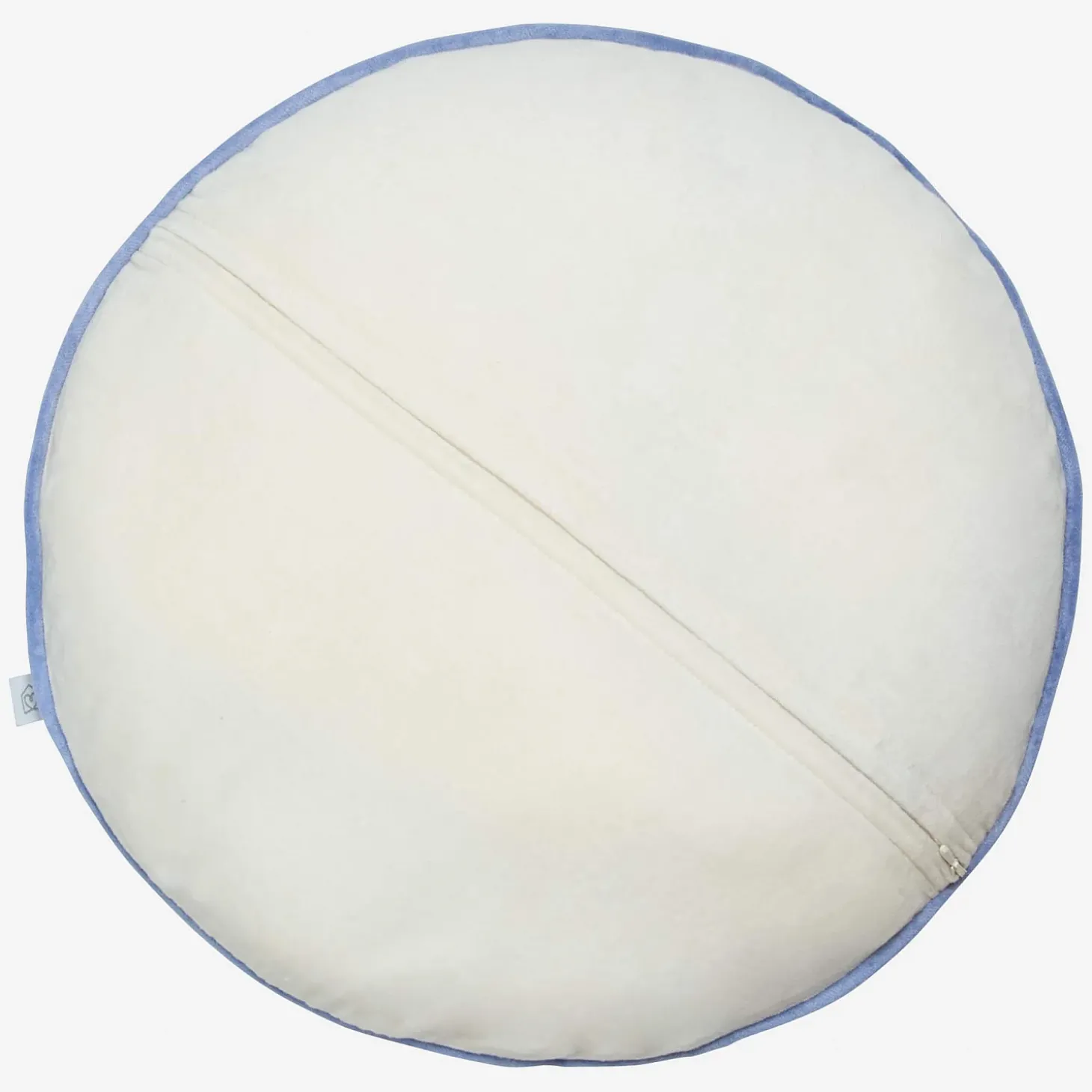 Le coussin rond Prune de couleur lilas mesure 40 cm de diamètre. En velours de coton, ce coussin est déhoussable.