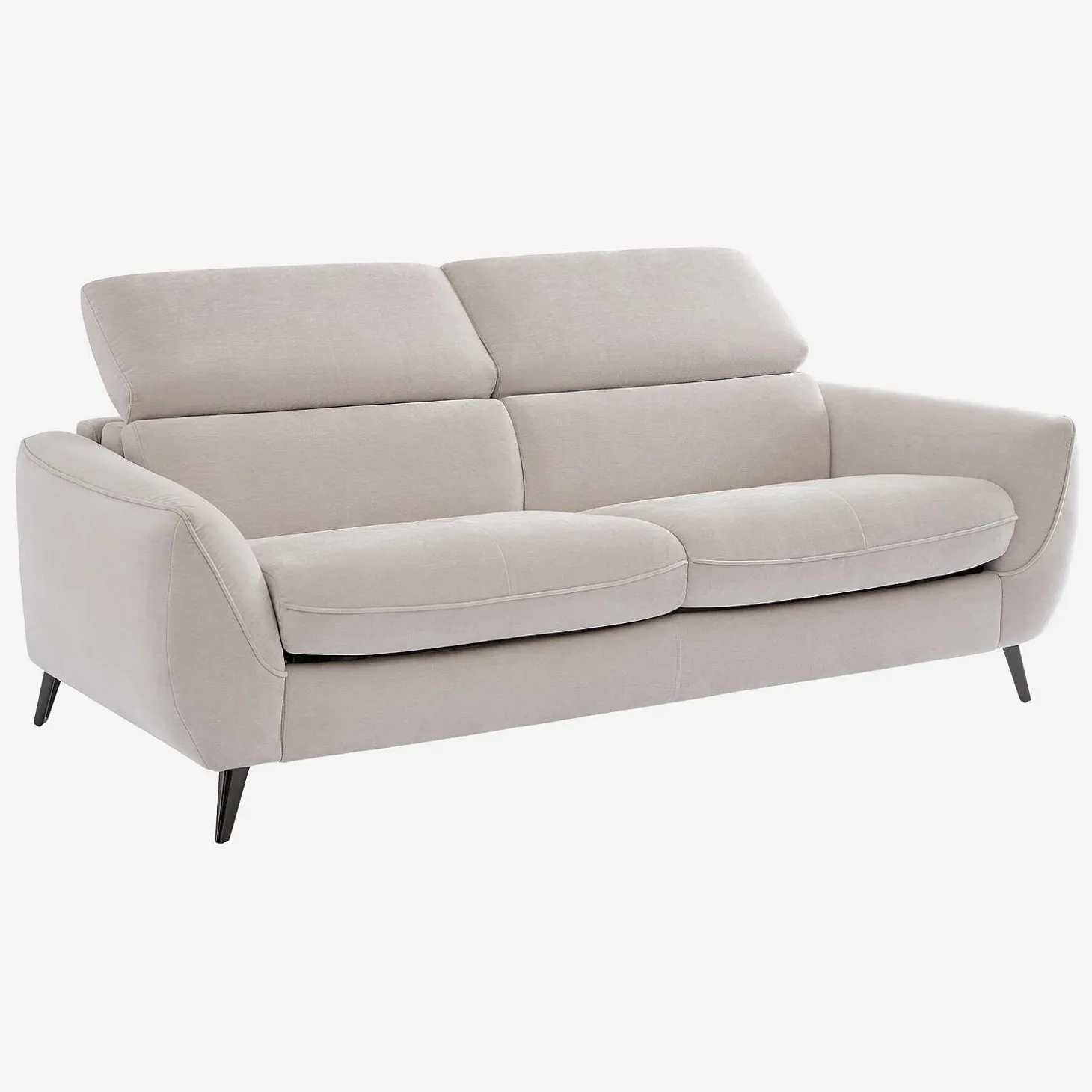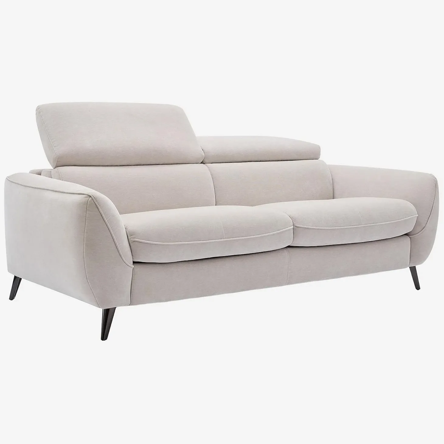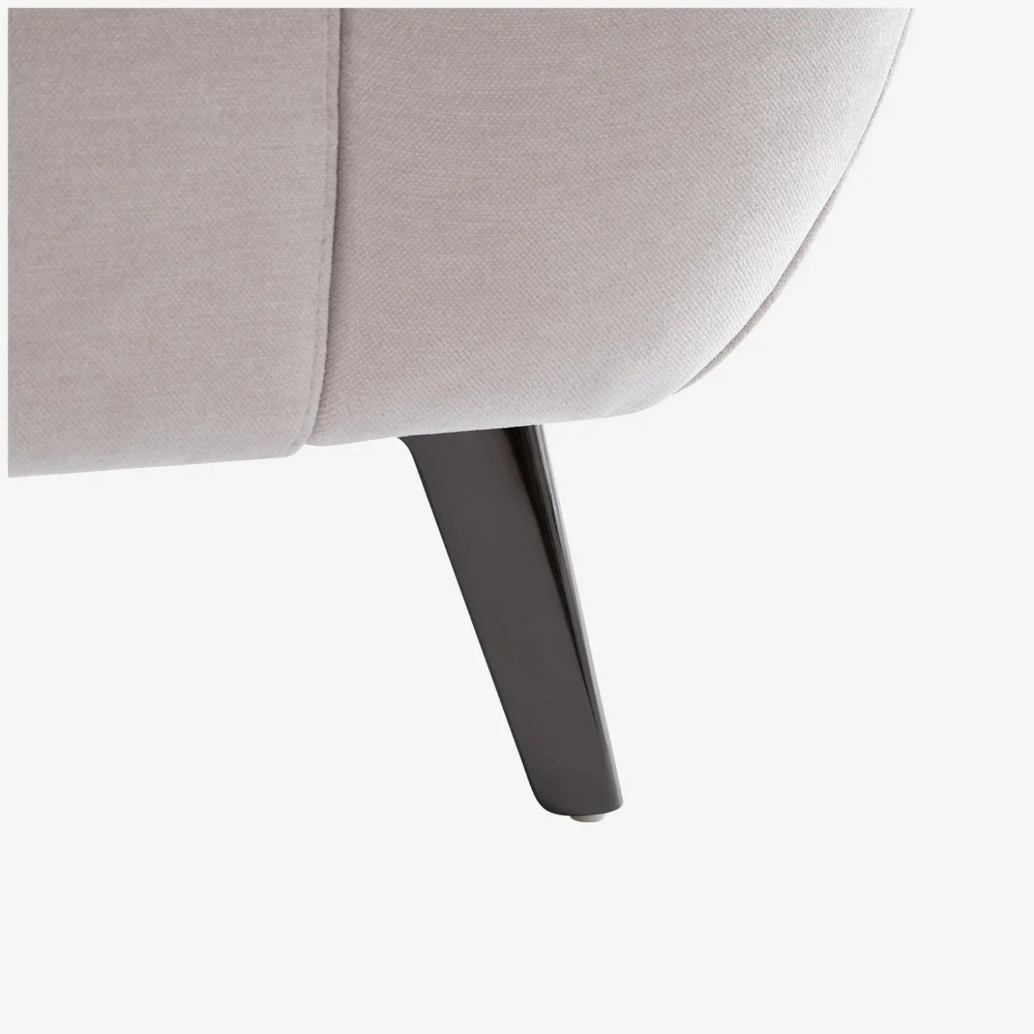 Son revêtement en tissu gris clair éclaircit la pièce, tandis que ses pieds fins en métal créent une sensation d’espace aéré.