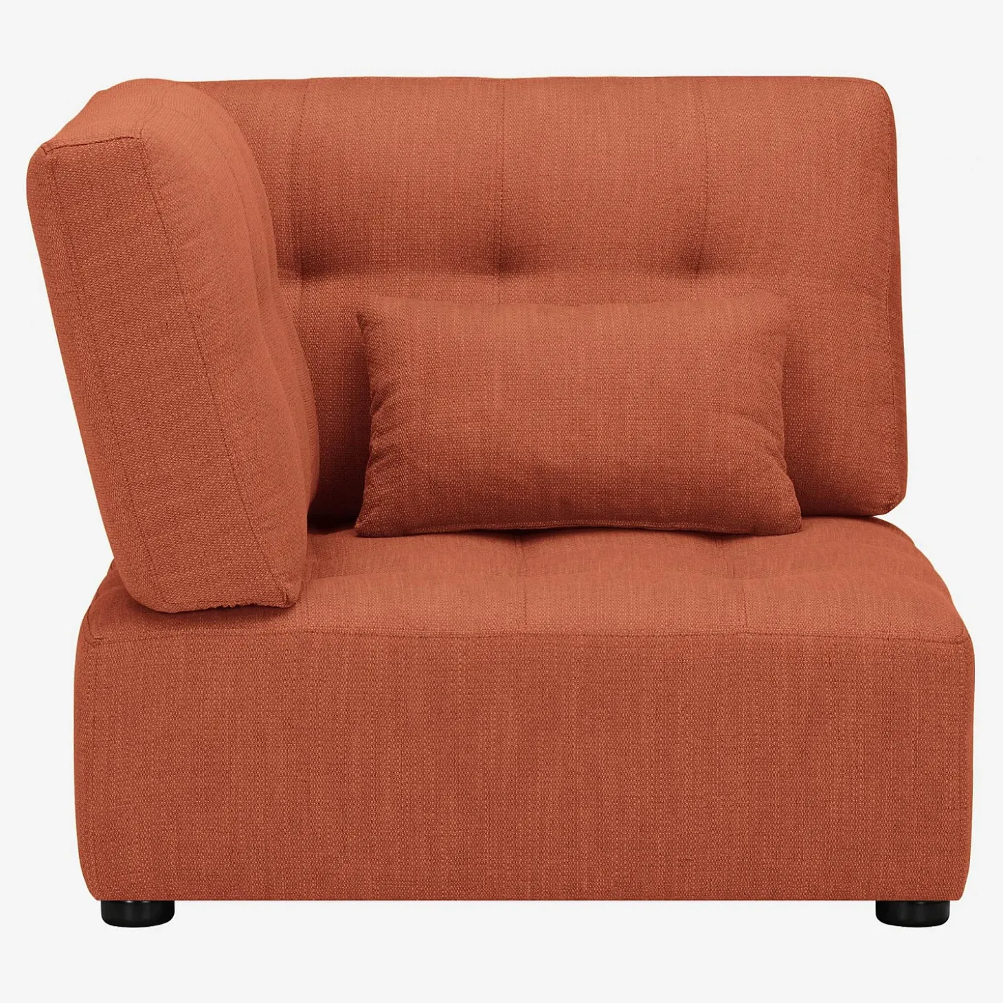 La chauffeuse d’angle gauche Reiko en tissu orange séduit par ses lignes rondes et sa grande fonctionnalité. Assemblée avec d’autres modules de la même collection, elle vous permet d’obtenir un canapé profond et spacieux. Les capitons lui donnent une très jolie finition.
