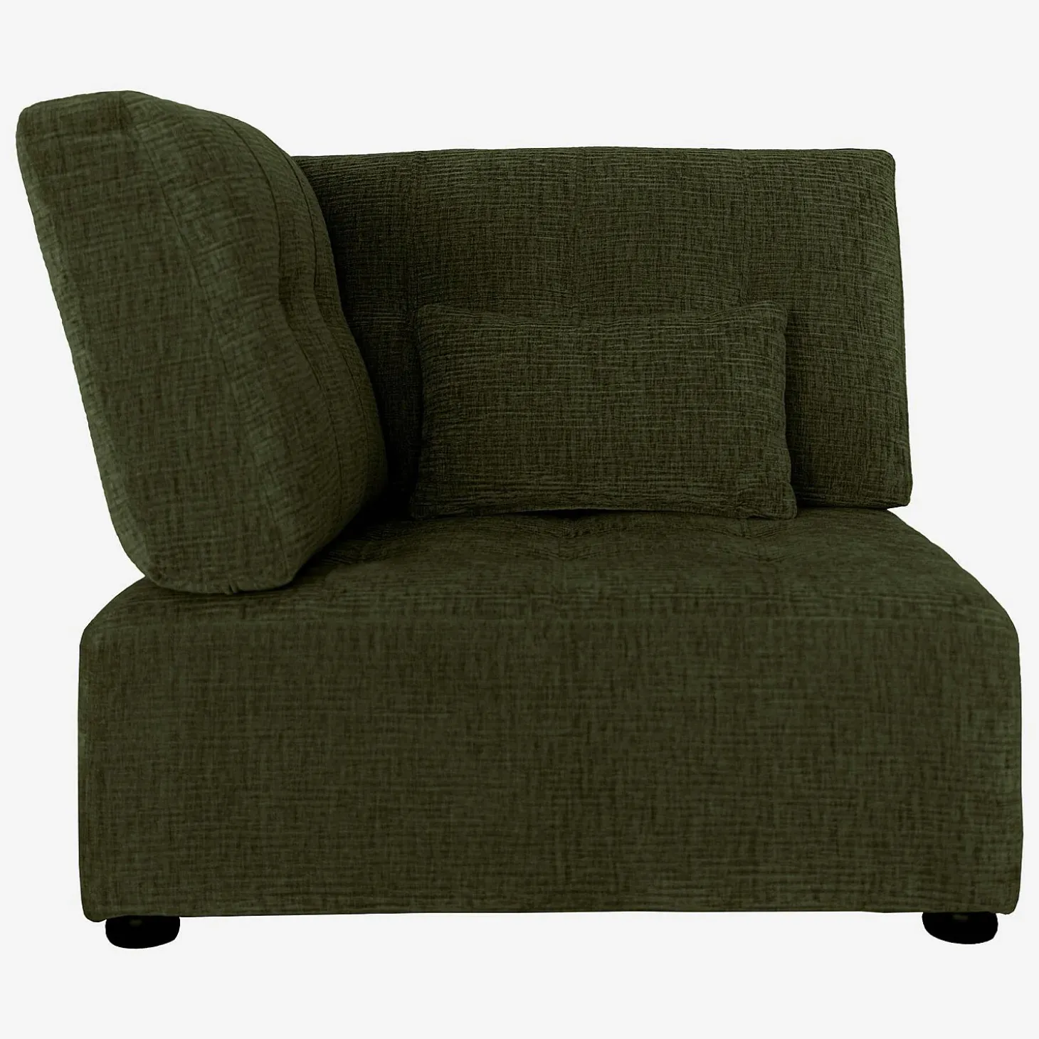 La chauffeuse d’angle gauche Reiko en tissu texturé vert kaki apporte une touche de couleur naturelle et apaisante. Pour un usage quotidien en toute sérénité, son dossier ainsi que le coussin décoratif sont déhoussables, offrant un entretien simplifié. Cette création s’assemble avec les autres éléments de la collection pour imaginer un canapé modulable 100% personnalisé, avec un angle enveloppant jouant avec les volumes.