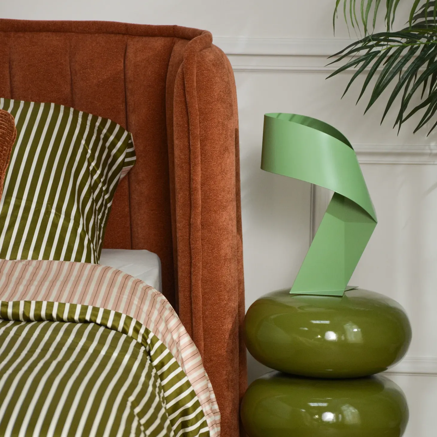 Imaginée par Claire Norcross en 2005, la lampe Ribbon incarne la rencontre parfaite entre la maîtrise technique et la poésie visuelle. Véritable prouesse de forme, de matière et de design, elle est composée d’une unique feuille d’acier délicatement enroulée, flottant dans l’espace, figée dans l’instant. Inspirée par le mouvement fluide du ruban et l’art délicat de l’origami, Ribbon capture l’élégance d’un geste suspendu, diffusant une lumière douce et pleine de nuances qui transforme chaque espace. A l’occasion de ses 20 ans, la lampe Ribbon se réinvente en trois coloris exclusifs : Vert Sauge, Rouge Cerise et Rose de Noël.