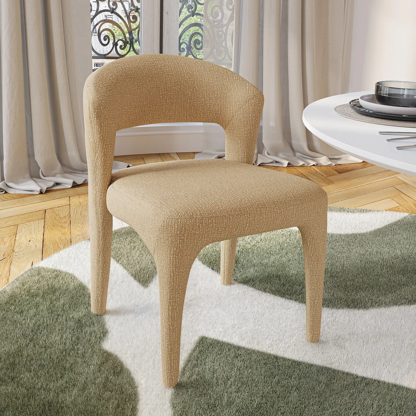 Habillées d’un tissu texturé jaune chiné, les chaises Rimaka séduisent par leur esthétique sobre et leur confort. La silhouette épurée associée à une teinte neutre permet une intégration facile dans un intérieur moderne.