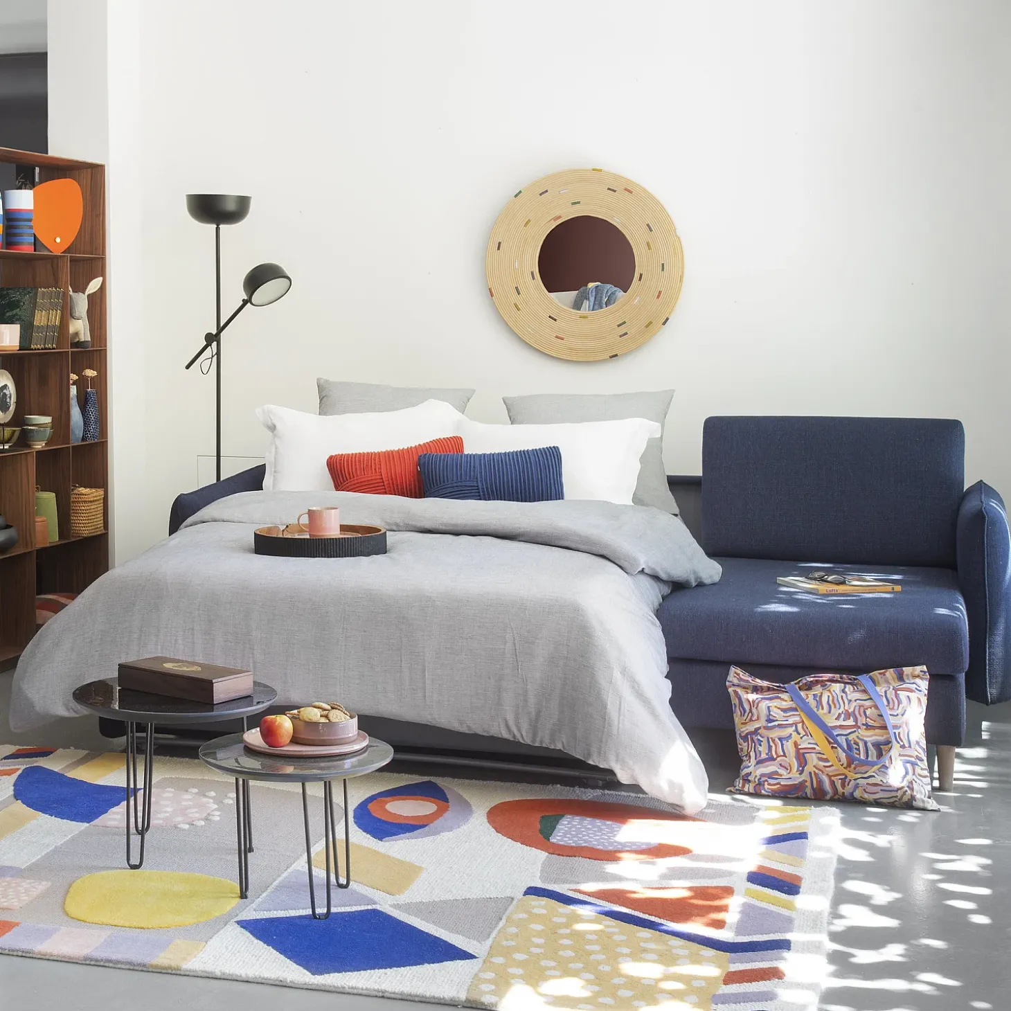 En journée, Robin devient un canapé au design scandinave accueillant et convivial. Ses accoudoirs fins contrastent élégamment avec ses proportions généreuses.