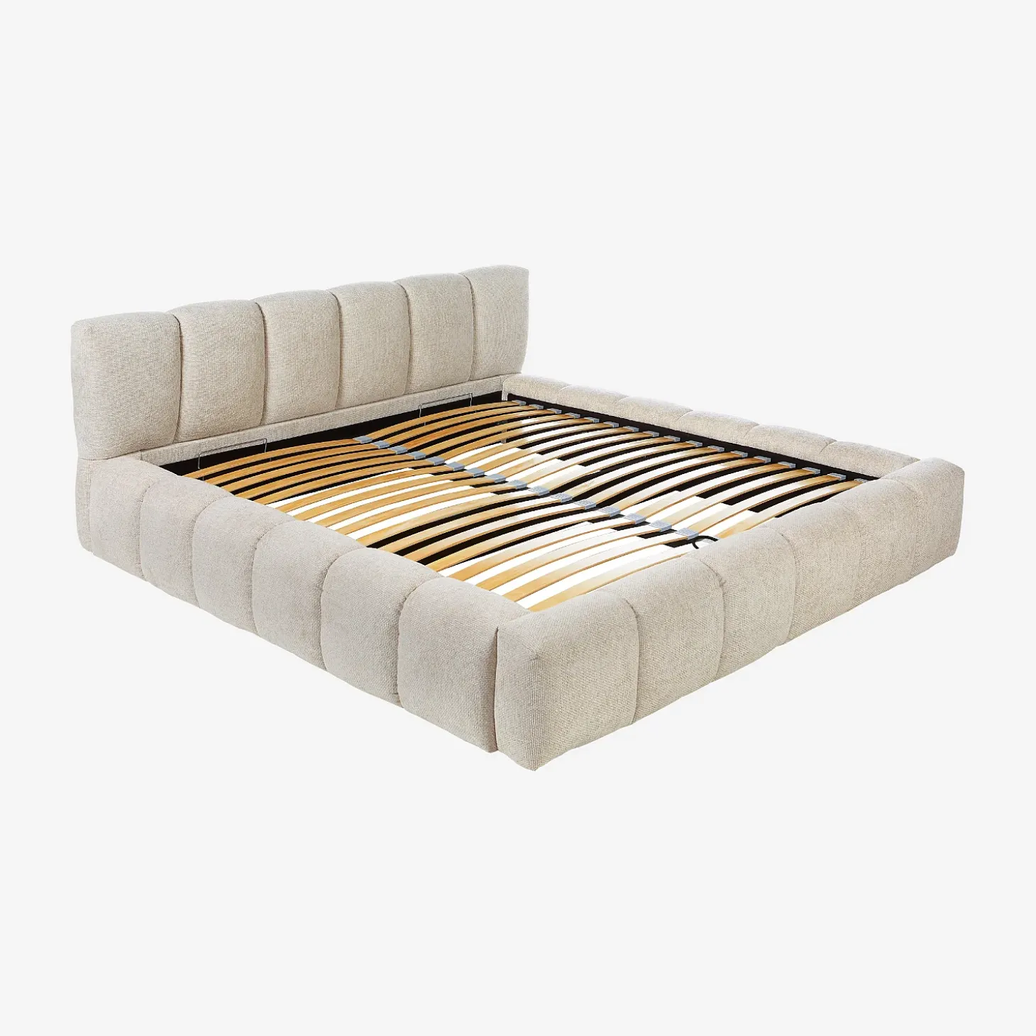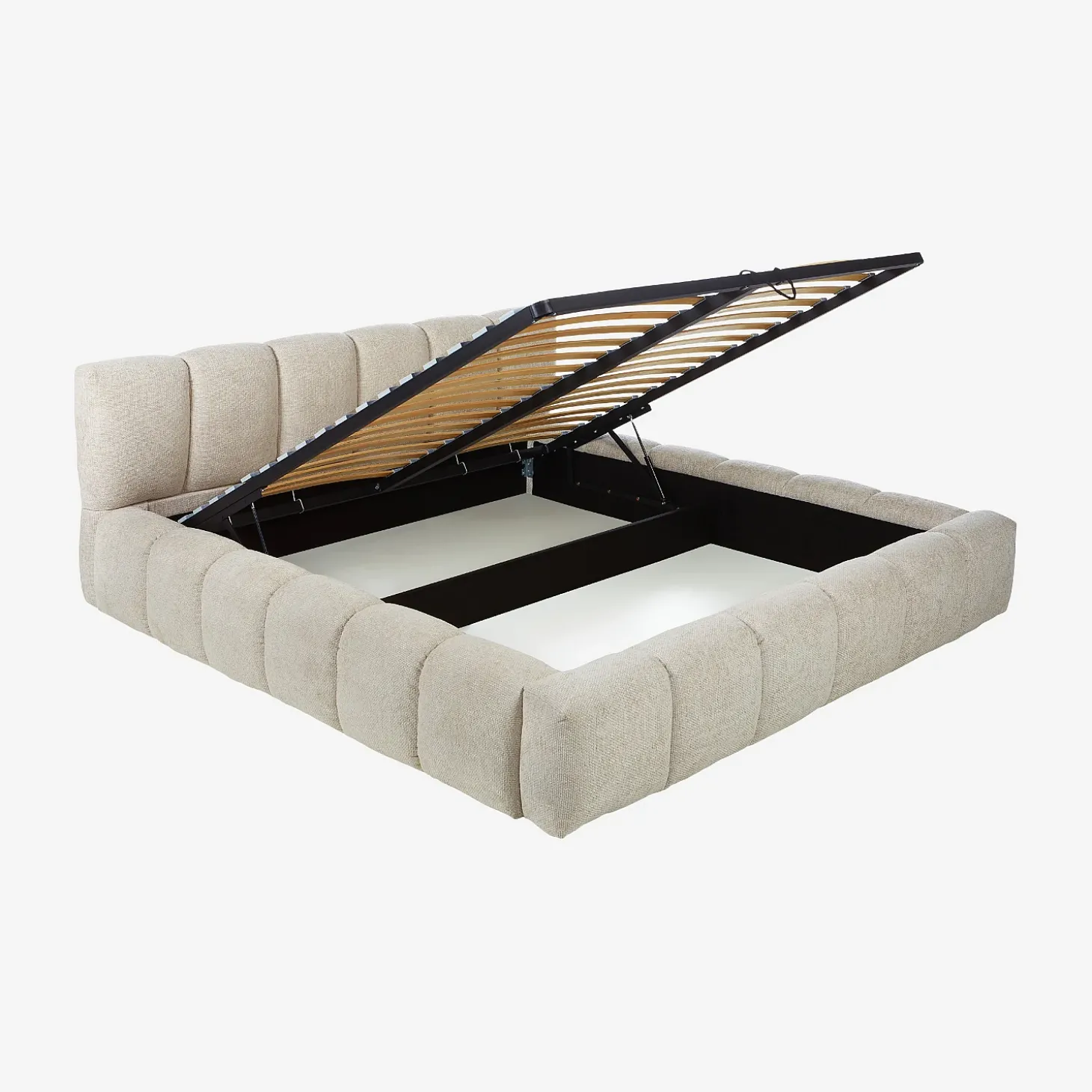 Aussi fonctionnel qu’élégant, le lit coffre Setana insuffle une atmosphère apaisante et cosy à la chambre grâce à ses volumes généreux et sa finition matelassée.