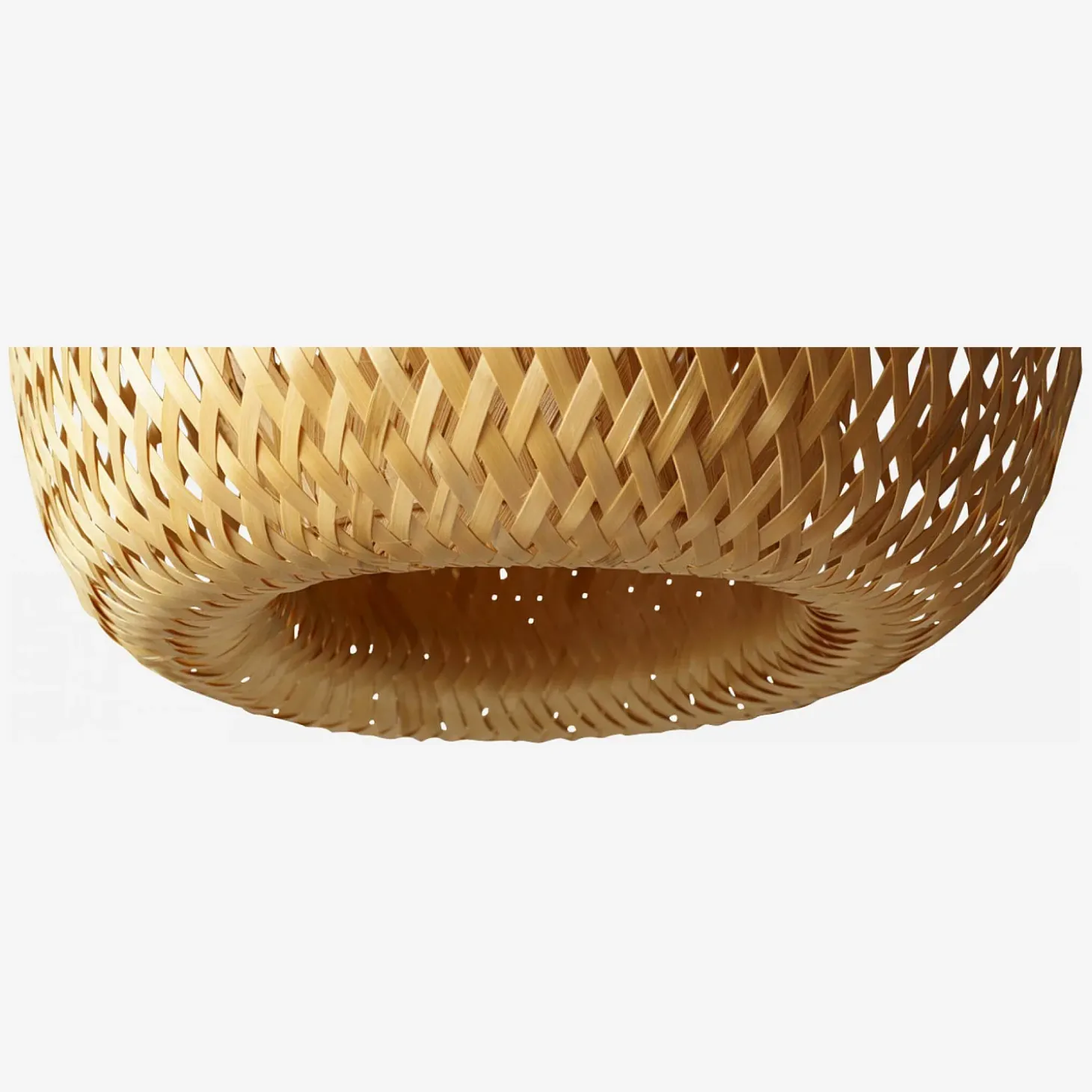 L’abat-jour pour suspension Sime en bambou mesure 37 cm de diamètre. Il se compose de deux cloches tressées à la main et imbriquées l’une dans l’autre pour un éclairage feutré et une ambiance chaleureuse.