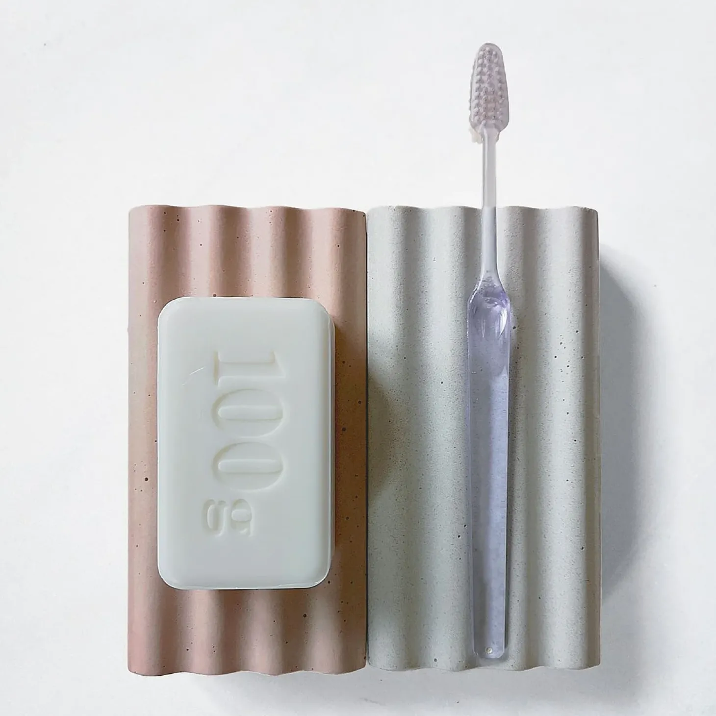 Béton mouléLes accessoires de salle de bain Socles, transforment les objets du quotidien en véritables pièces décoratives grâce à leur design en béton minimaliste.