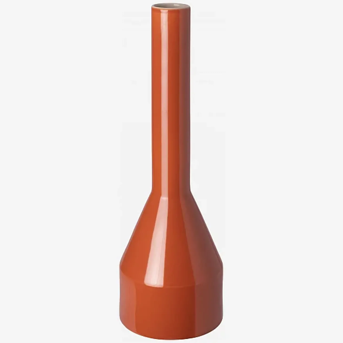 En grès émaillé, le vase Sofia de couleur orange adopte un design épuré et une forme élancée. Son aspect totémique, sa couleur éclatante et son émail brillant en font un objet décoratif remarquable, avec ou sans fleur.