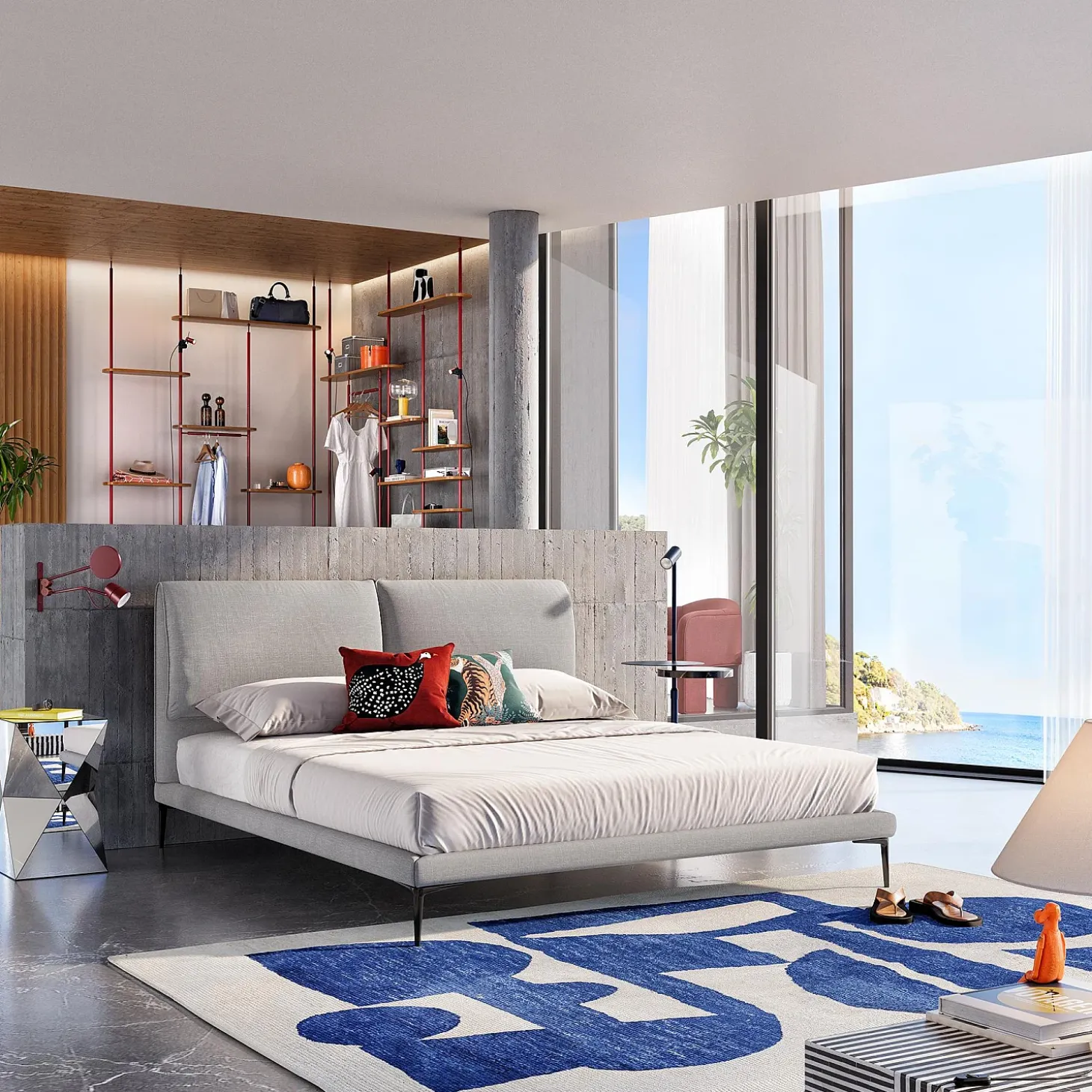 Les lignes épurées et minimalistes du lit Softy instaurent une ambiance loft affirmée dans la chambre, la rendant à la fois design et moderne.