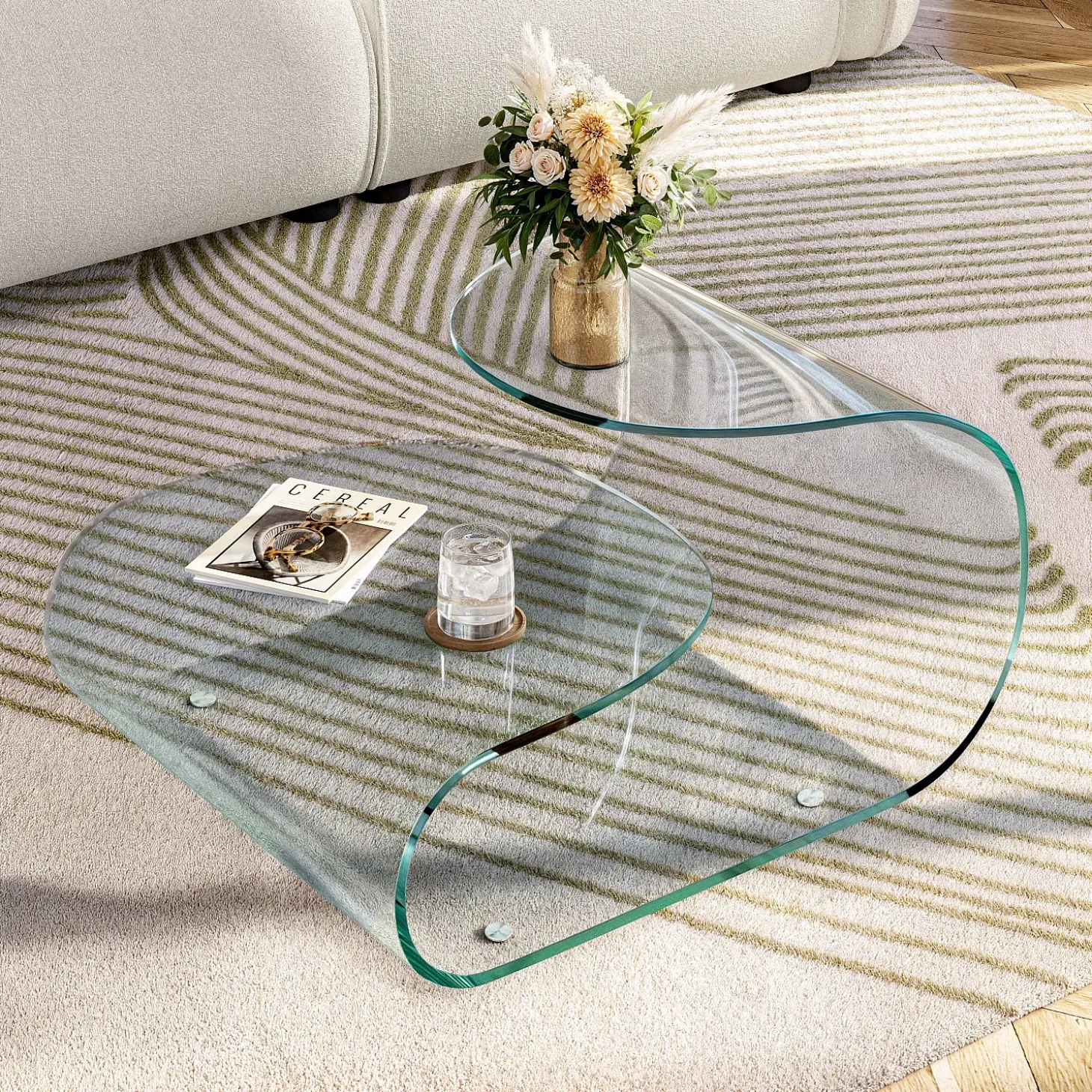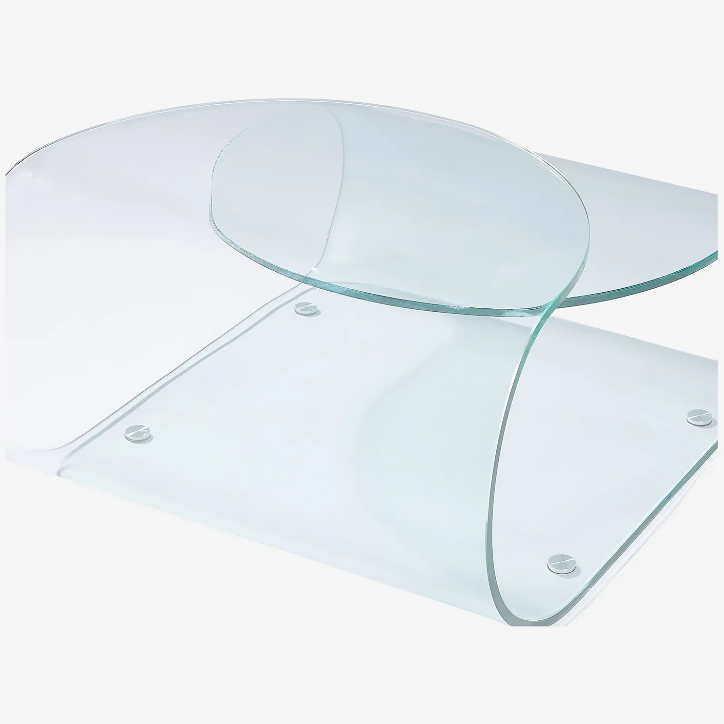 Sa structure en double plateau asymétrique en fait un élément central et une pièce de choix dans l’aménagement de tout espace contemporain. Les courbes arrondies, associées au verre, créent une harmonie parfaite entre transparence, résistance et élégance.