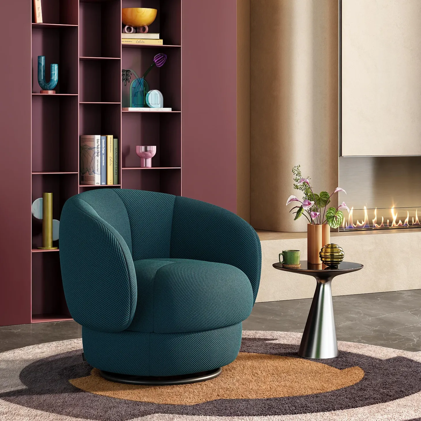 Idéal pour réhausser une décoration d’intérieur avec caractère, le fauteuil pivotant Somio fascine par son élégance et son audace.
