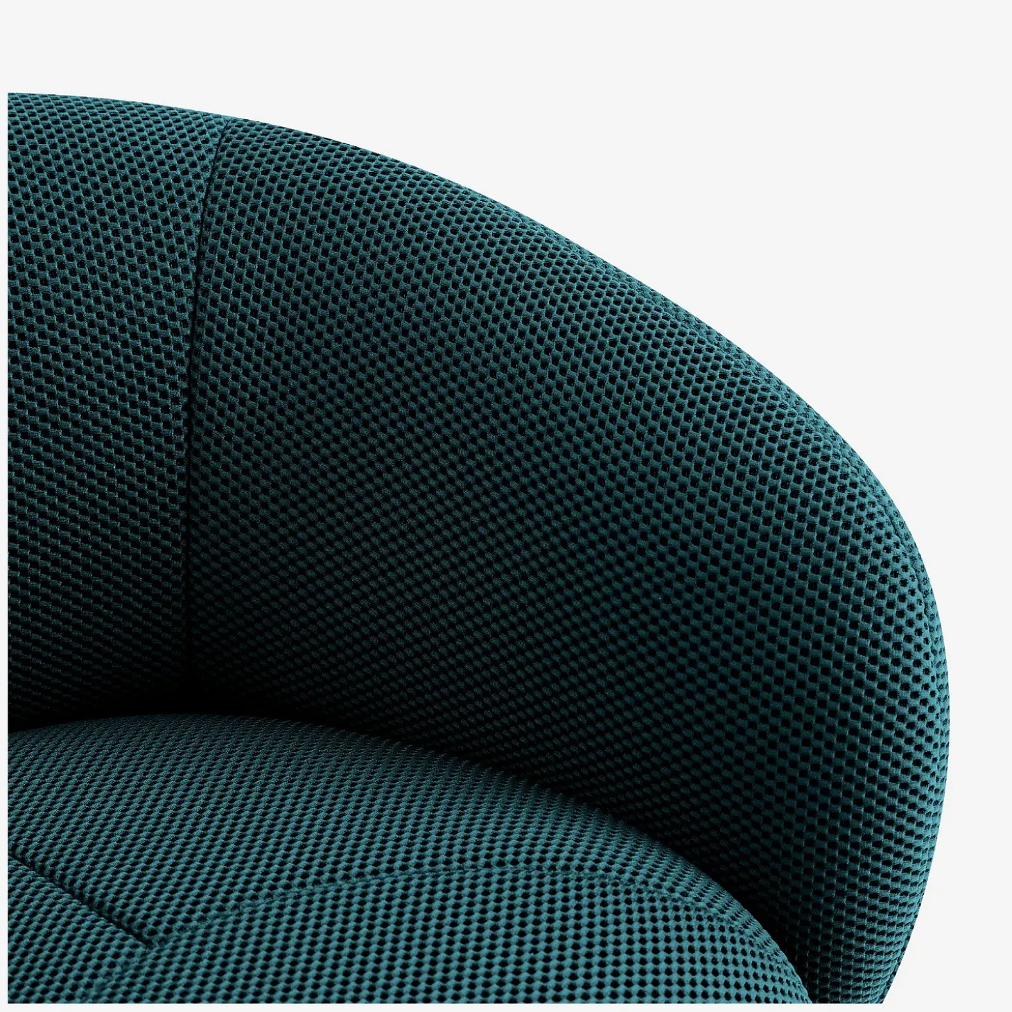 Le fauteuil pivotant Somio est revêtu d’un tissu 3D singulier. Alvéolé et unique en son genre, ce matériau combine design et technologie de pointe. Conçu pour être confortable, il est également léger, élastique et doté d’une résistance exceptionnelle aux altérations, garantissant une robustesse durable. Son maillage tridimensionnel lui confère des propriétés respirantes, assurant une perméabilité à l’air et une régulation thermique optimale, tout en apportant immédiatement du cachet à la pièce. Son relief captivant crée une atmosphère unique et design, mise en valeur par son coloris bleu canard vibrant.