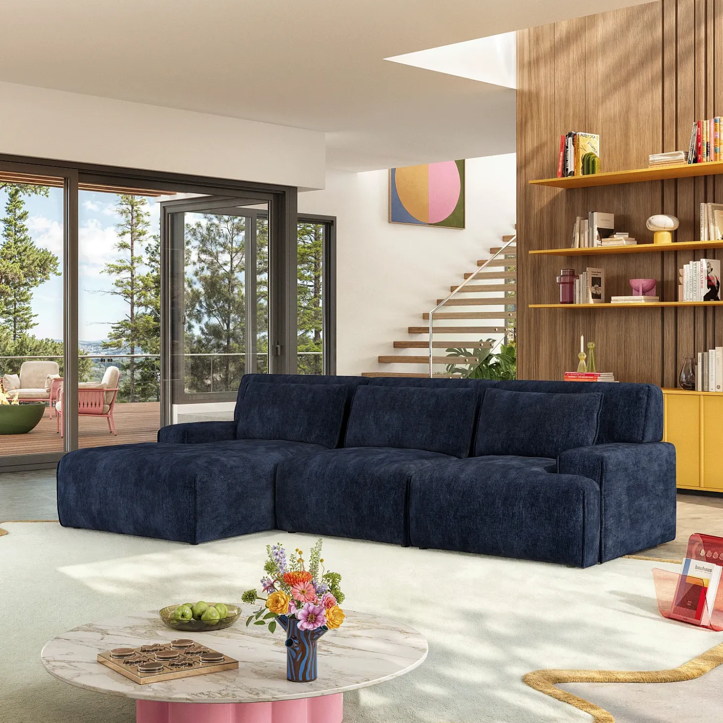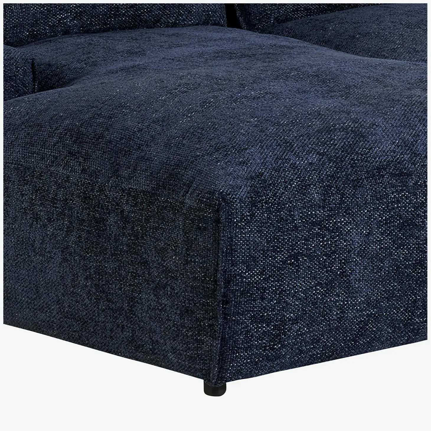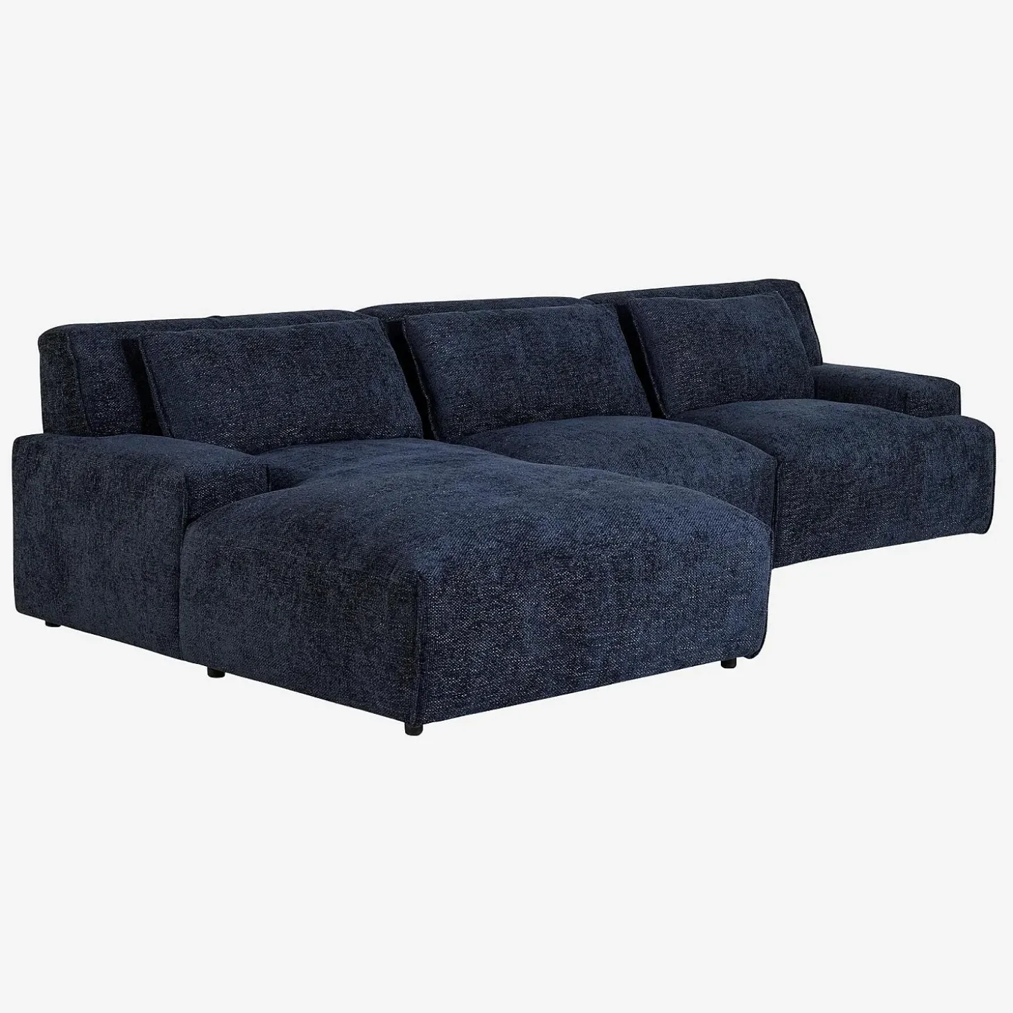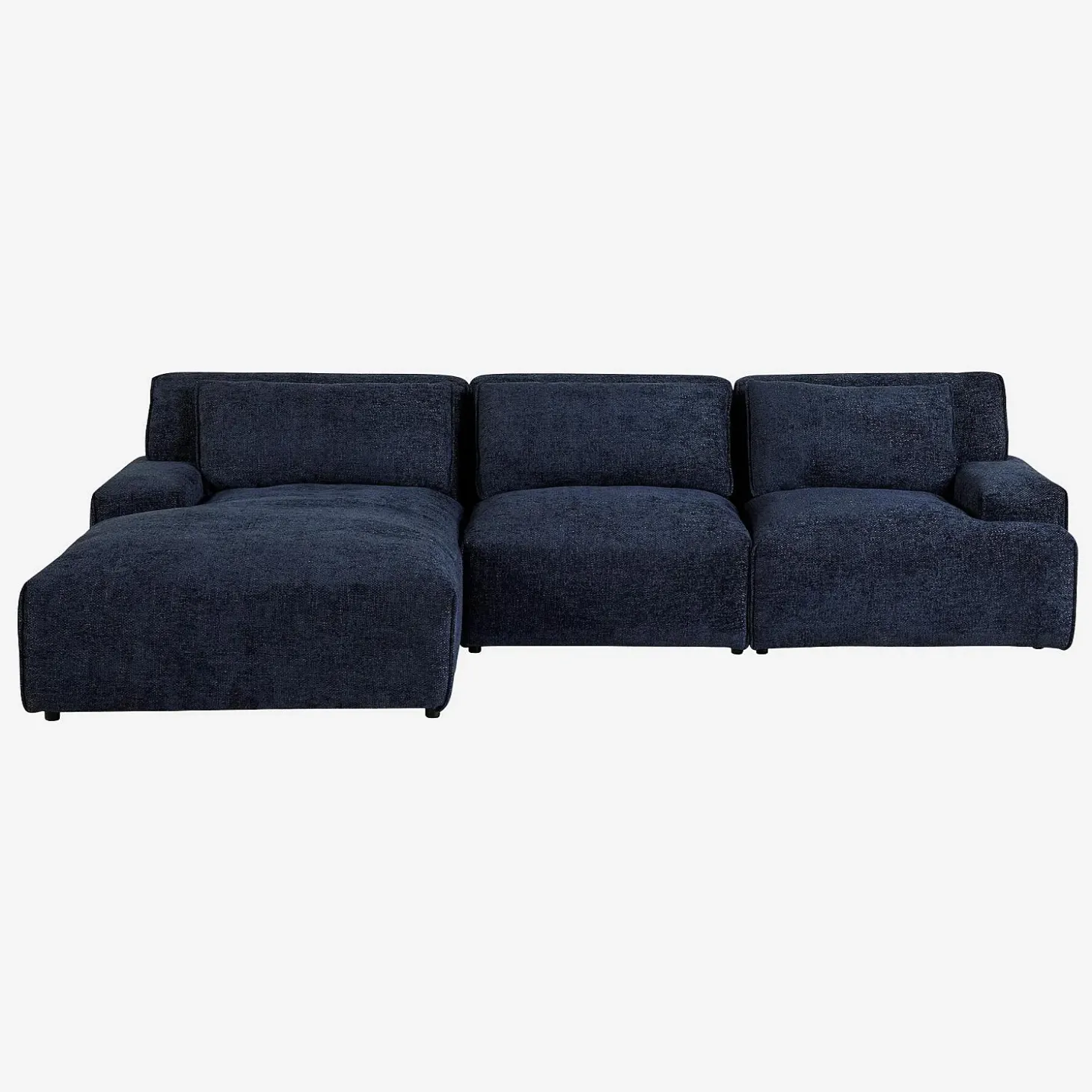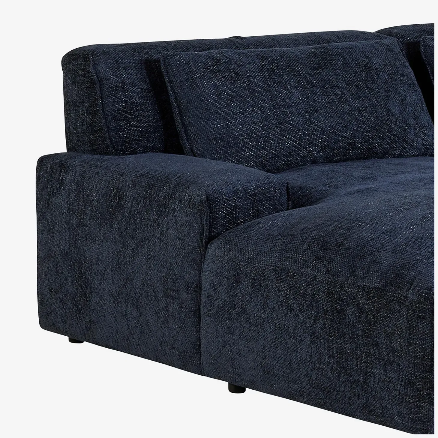Le canapé d’angle gauche Starry en tissu chenille bleu marine sublime les grands espaces. Le coloris intense et raffiné de son revêtement doux crée une ambiance sophistiquée et apaisante.