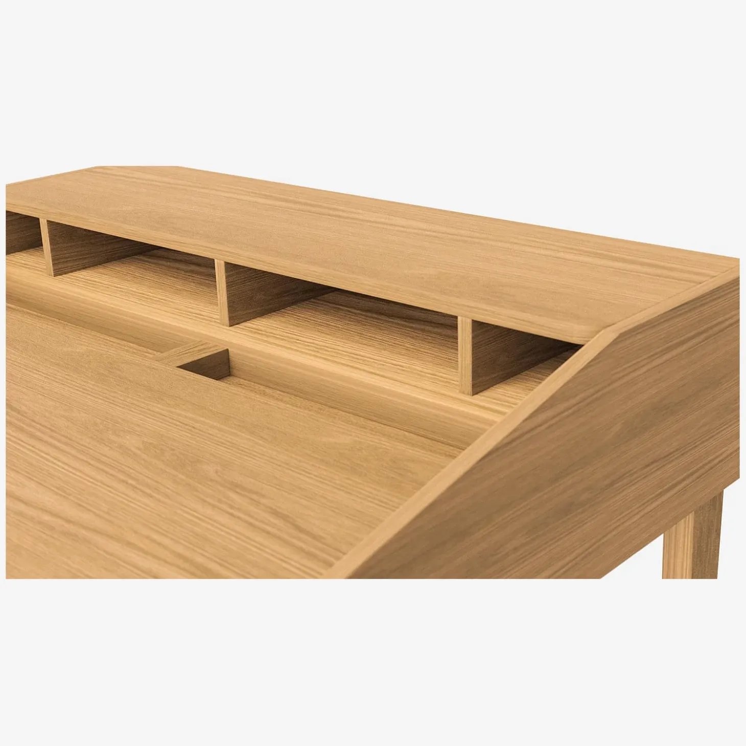 Autres parties : panneaux de particules plaqués chêne laqué mat. (Quercus robur, Picea abies, Pinus sylvatica, origine: Pologne)Tania réinvente le secrétaire en chêne avec un design minimaliste et des rangements ingénieux pour un bureau compact et élégant.