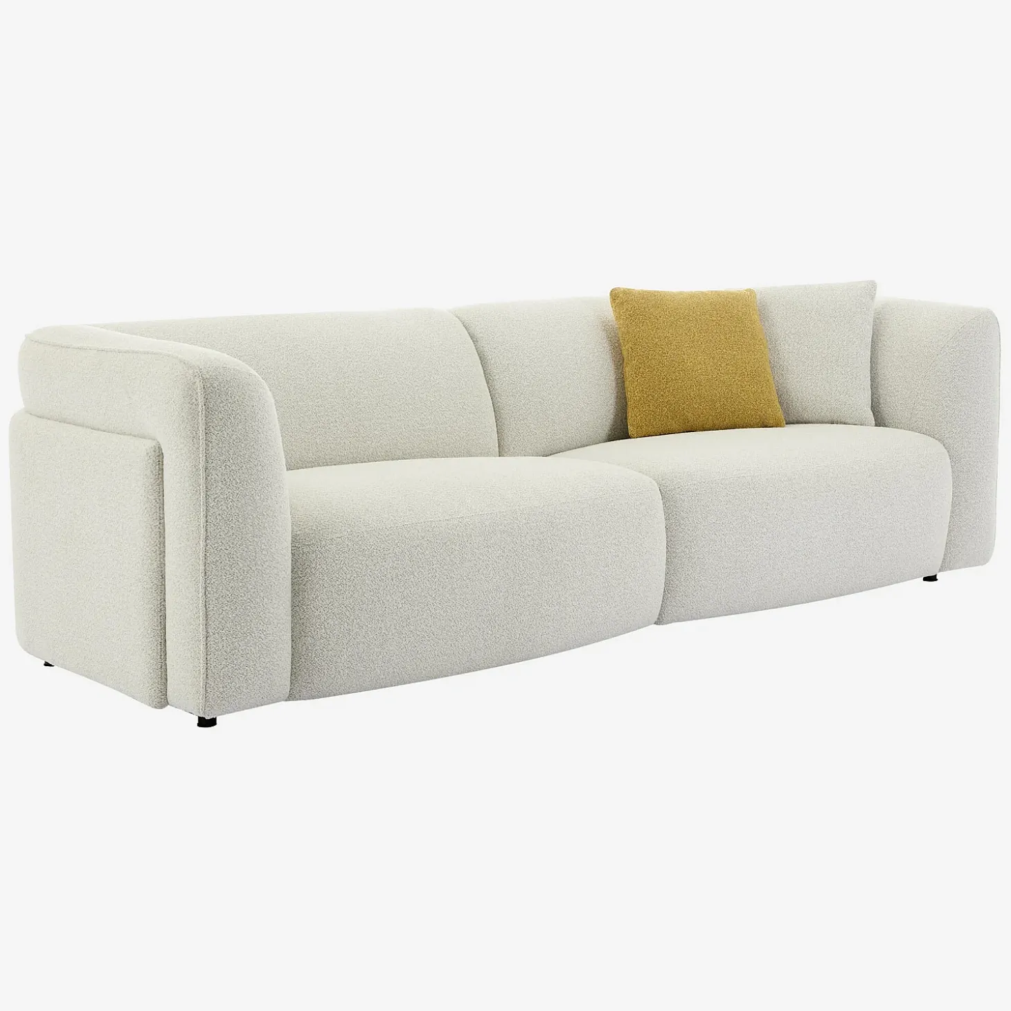 Certaines photos d’ambiance peuvent comporter de légères variations par rapport au modèle réel.Temoli affirme sa présence par ses formes arrondies et son revêtement bouclette. Un canapé 4 places généreusement garni pour créer un cocon accueillant.