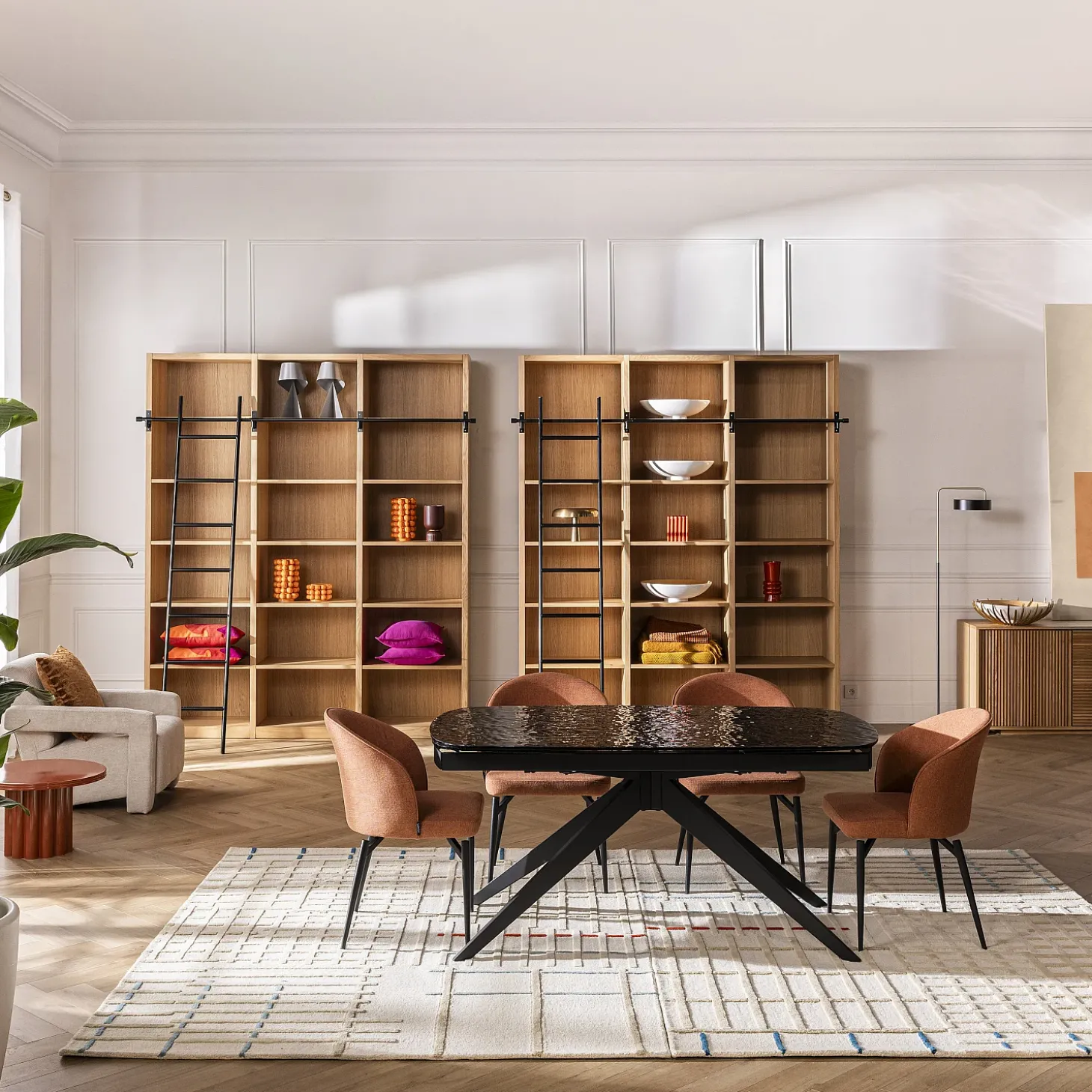 La table Tensie s’invite avec style et prestance dans la salle à manger, insufflant à l’espace une atmosphère à la fois raffinée et résolument moderne.