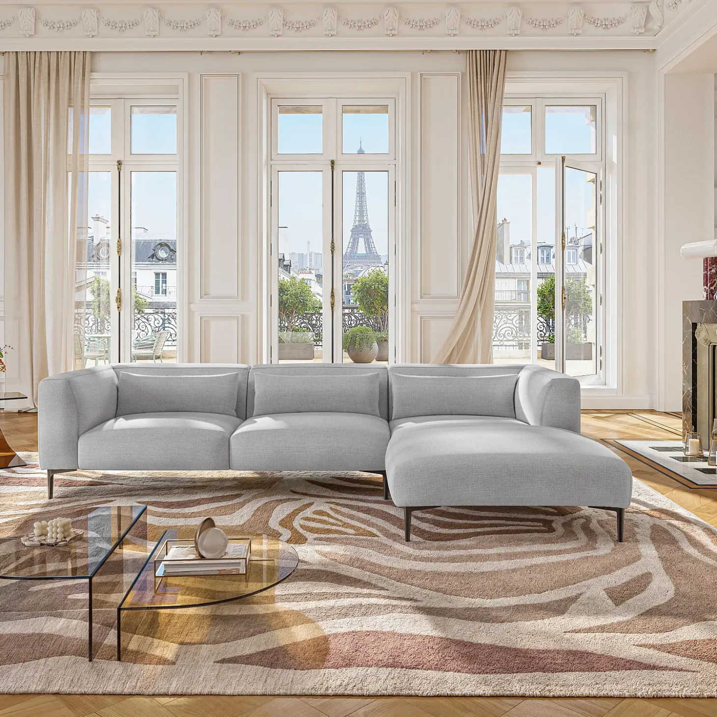 Le canapé d’angle Tessie incarne l’élégance moderne et se distingue par ses lignes épurées et sa silhouette délicate.
