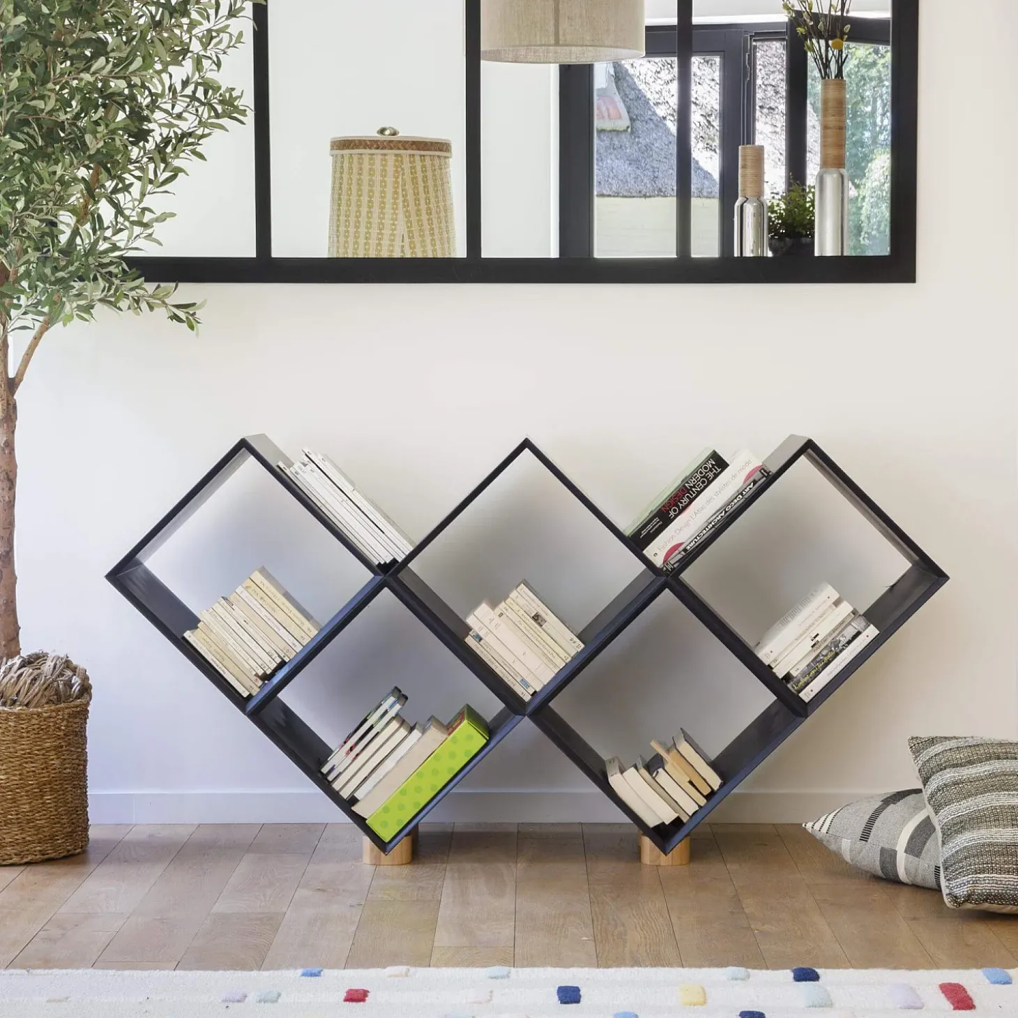Pieds : chêne massif laqué. (Quercus Spp. ; origine: Allemagne)Tim se distingue par son design modulable et audacieux, une étagère 5 cubes en bois qui allie rangement et décoration.
