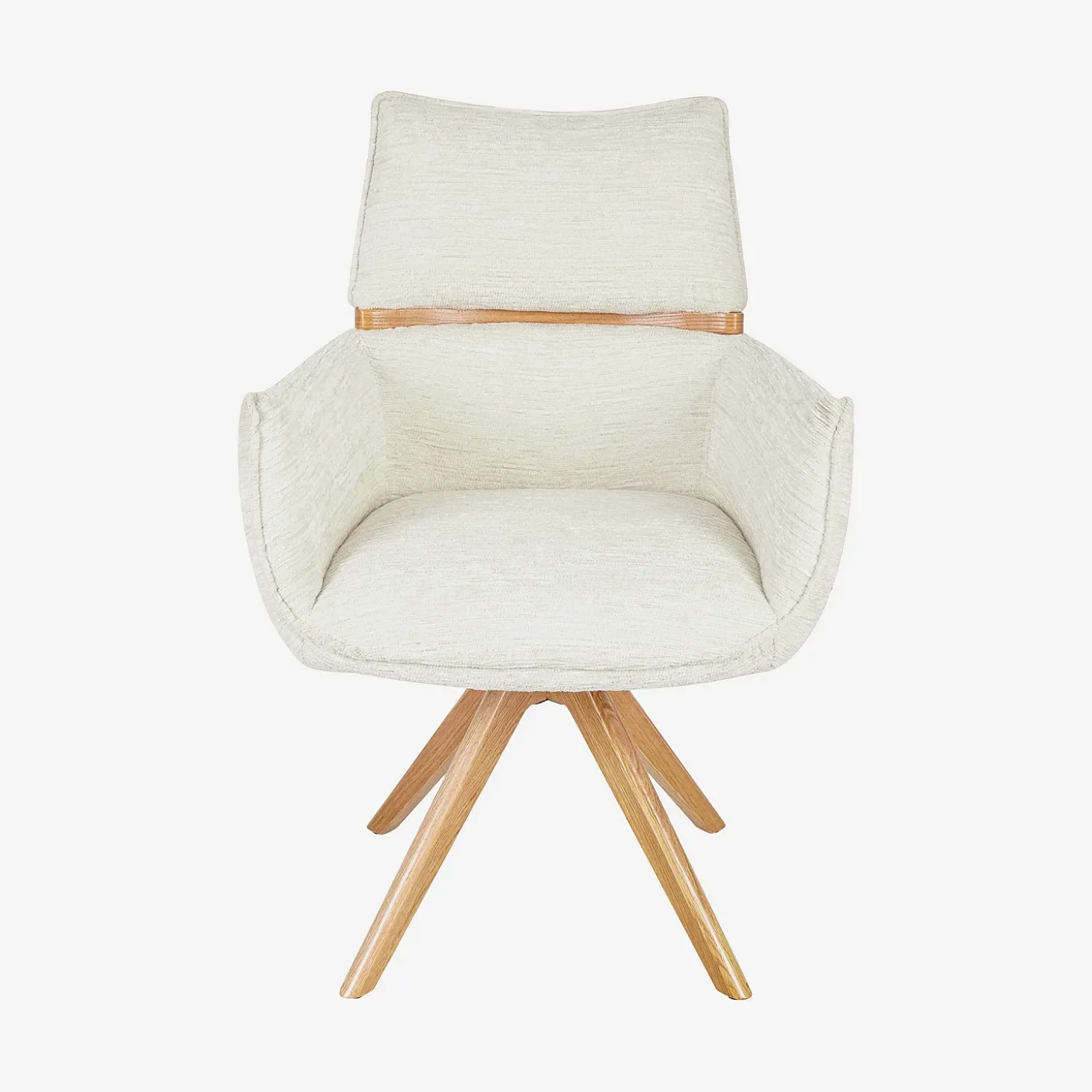 Chêne naturel, revêtement crème et tissu texturé, la chaise avec accoudoirs Timiso est un indémodable qui reste chic et moderne en toutes circonstances.