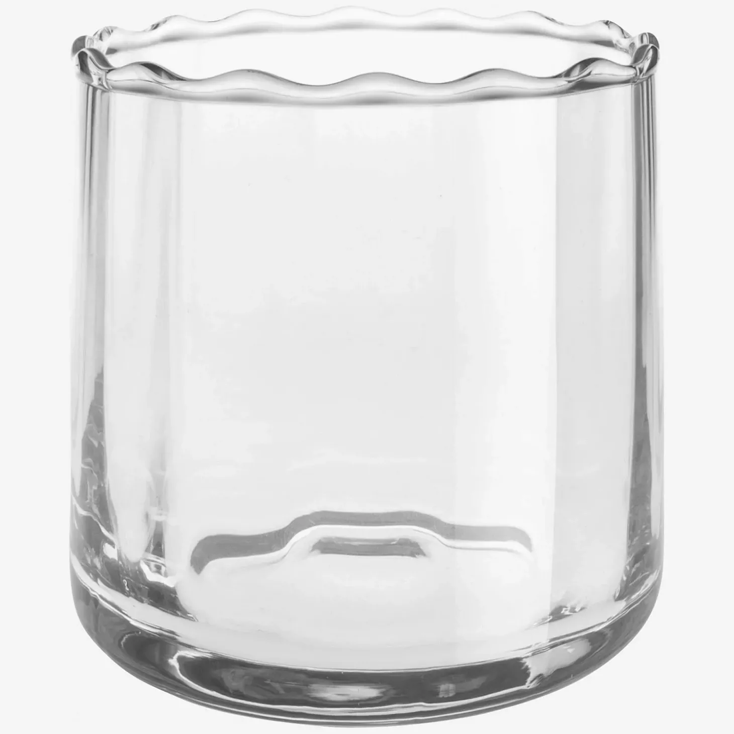 Ce vase en verre transparent a été soufflé à la bouche. Il mesure 10 cm de diamètre et de hauteur. Il capture la lumière et la diffuse dans la pièce tout en sublimant vos bouquets.