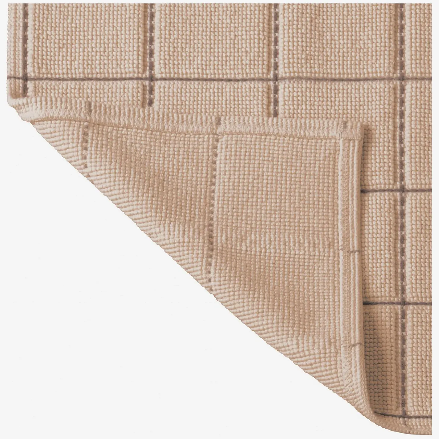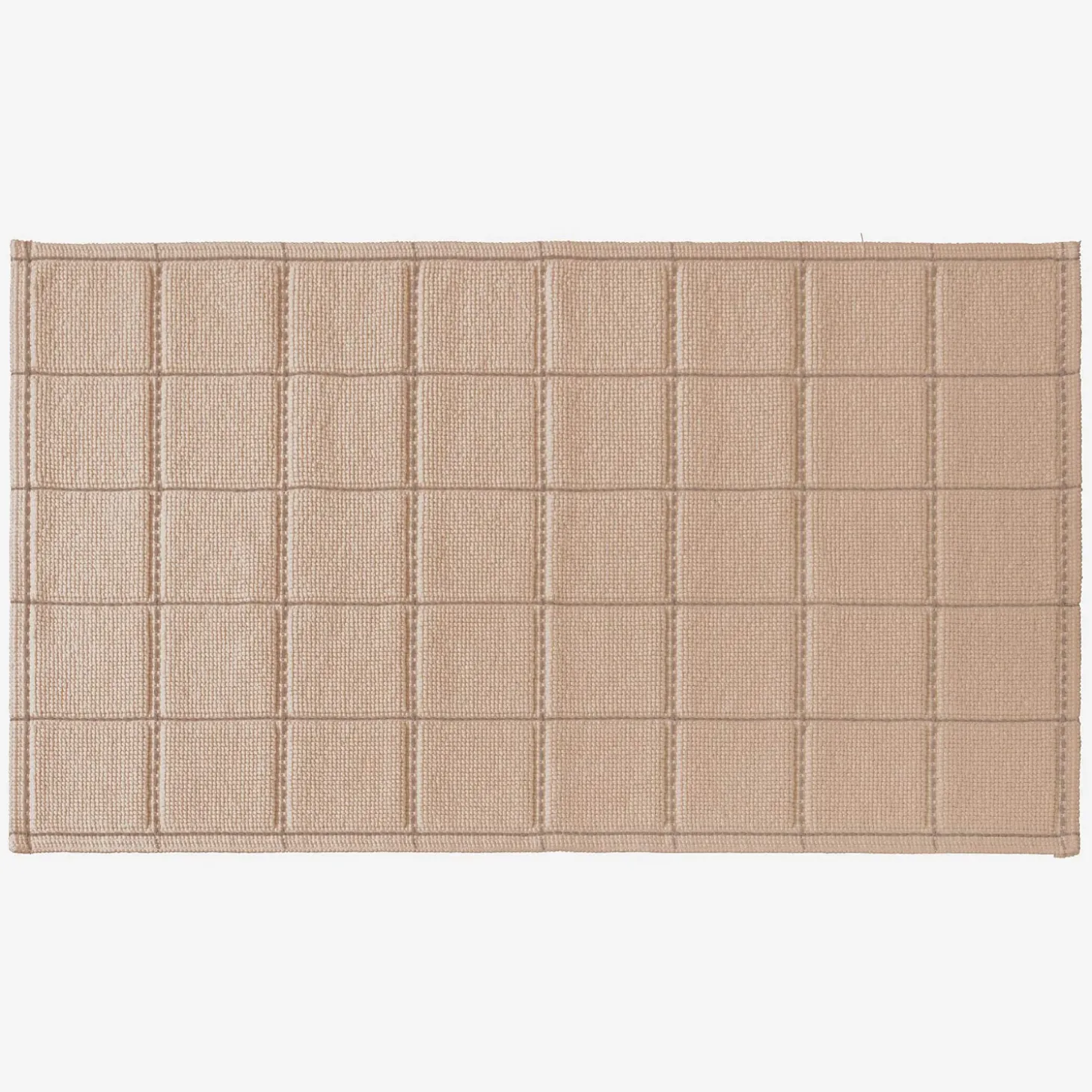 Ce tapis de bain à carreaux beige est en coton. Très absorbant, il est doux sous vos pieds à la sortie de la douche.