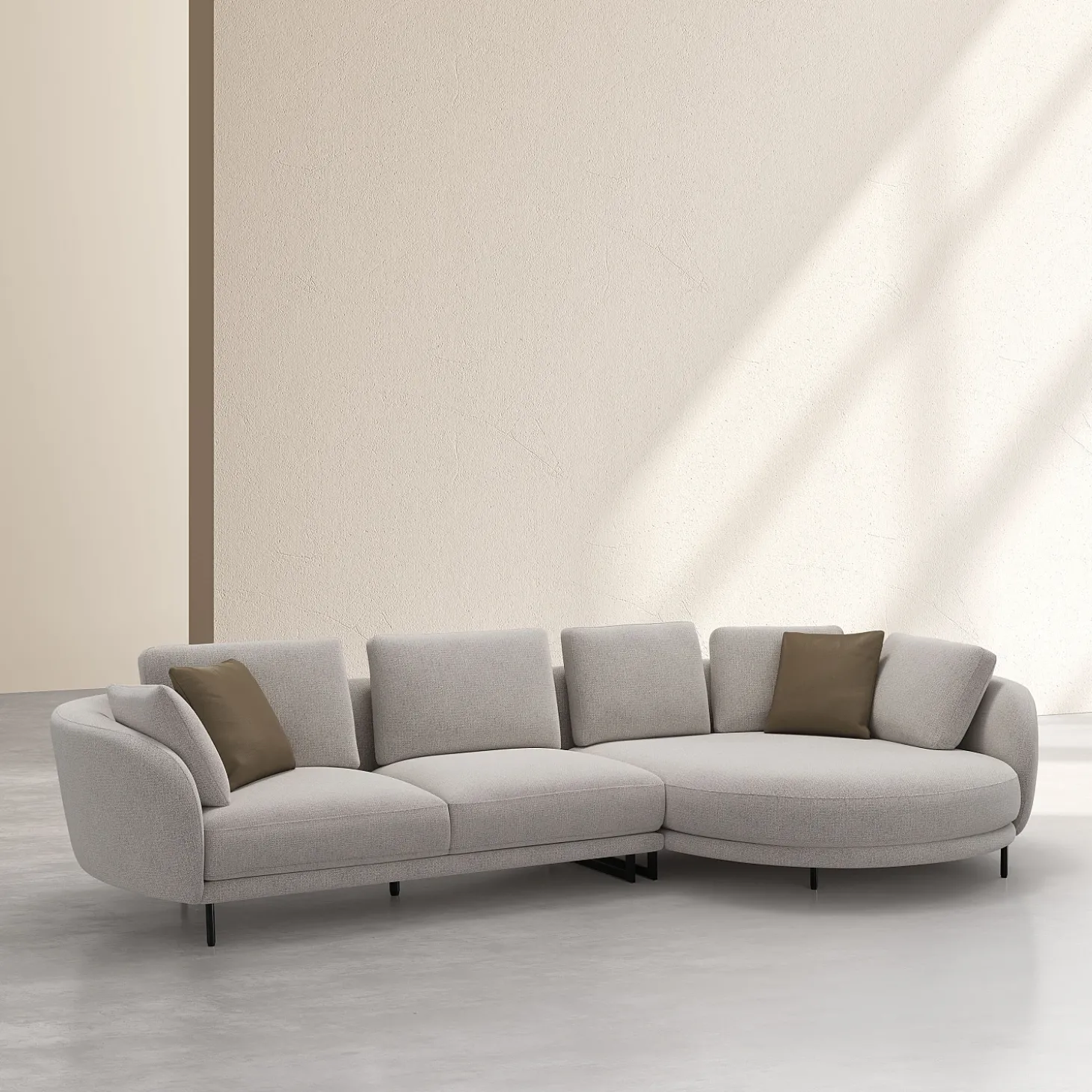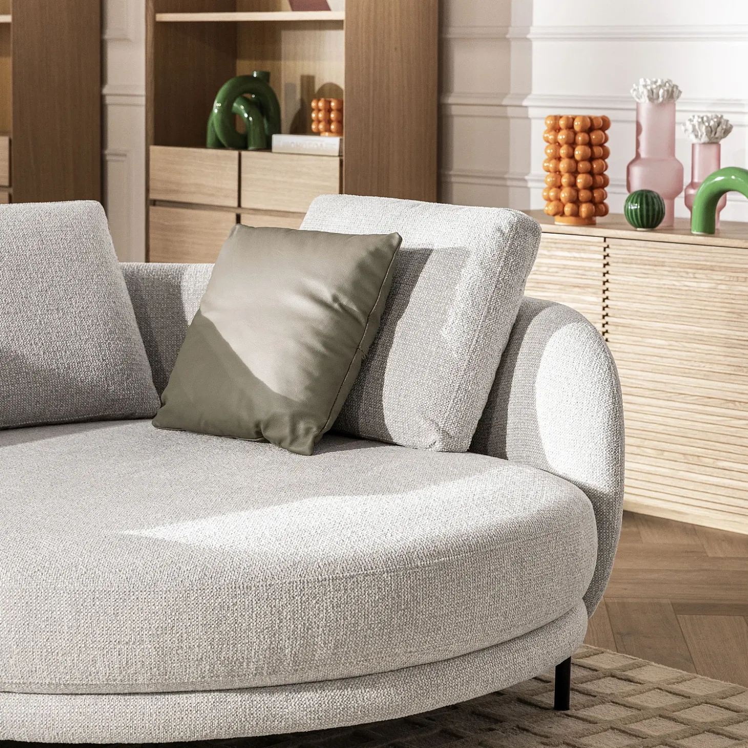 Design, sa méridienne arrondie placée à droite apporte le confort d’un canapé généreux, tout en s’adaptant aux espaces mêmes les plus restreints grâce à ses dimensions compactes.