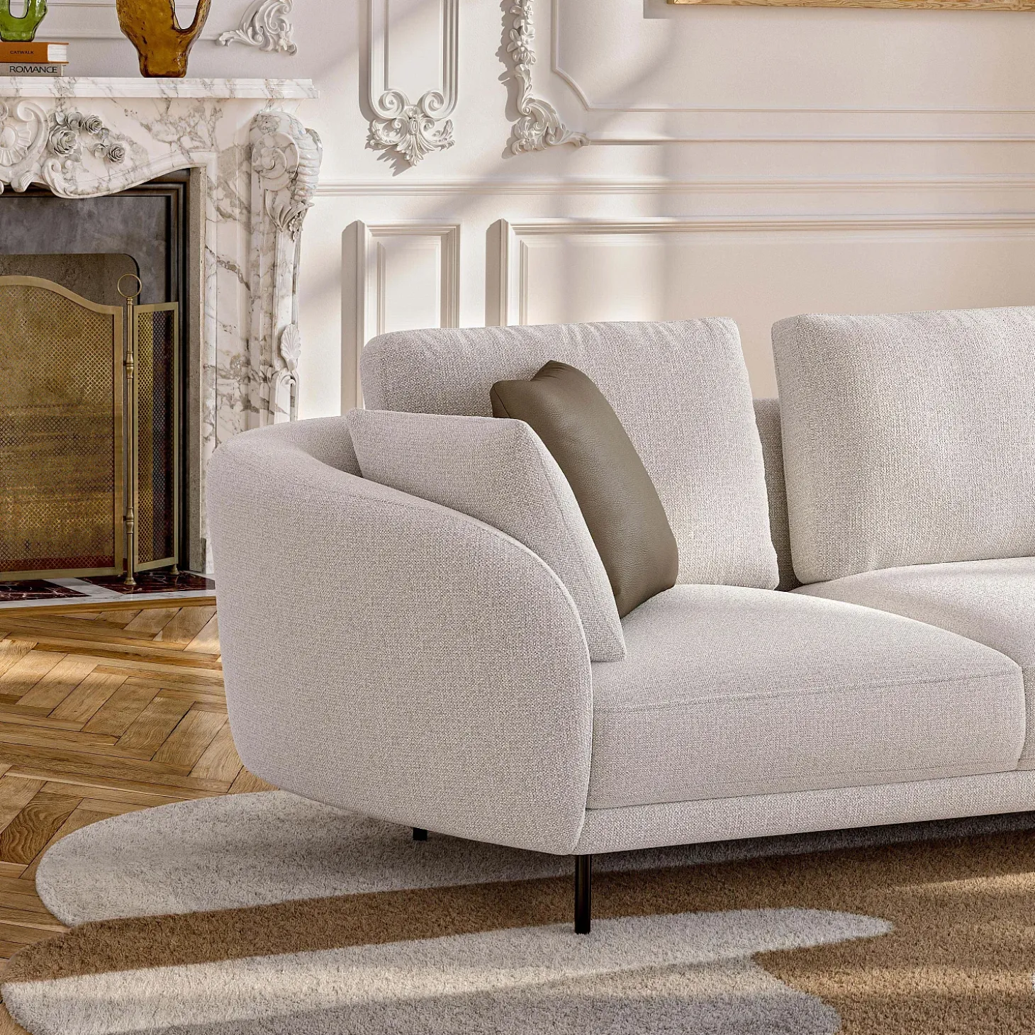 Les courbes raffinées du canapé d’angle droit Velia instaurent une atmosphère douce et agréable, pour faire du salon un havre de paix et de bien-être.