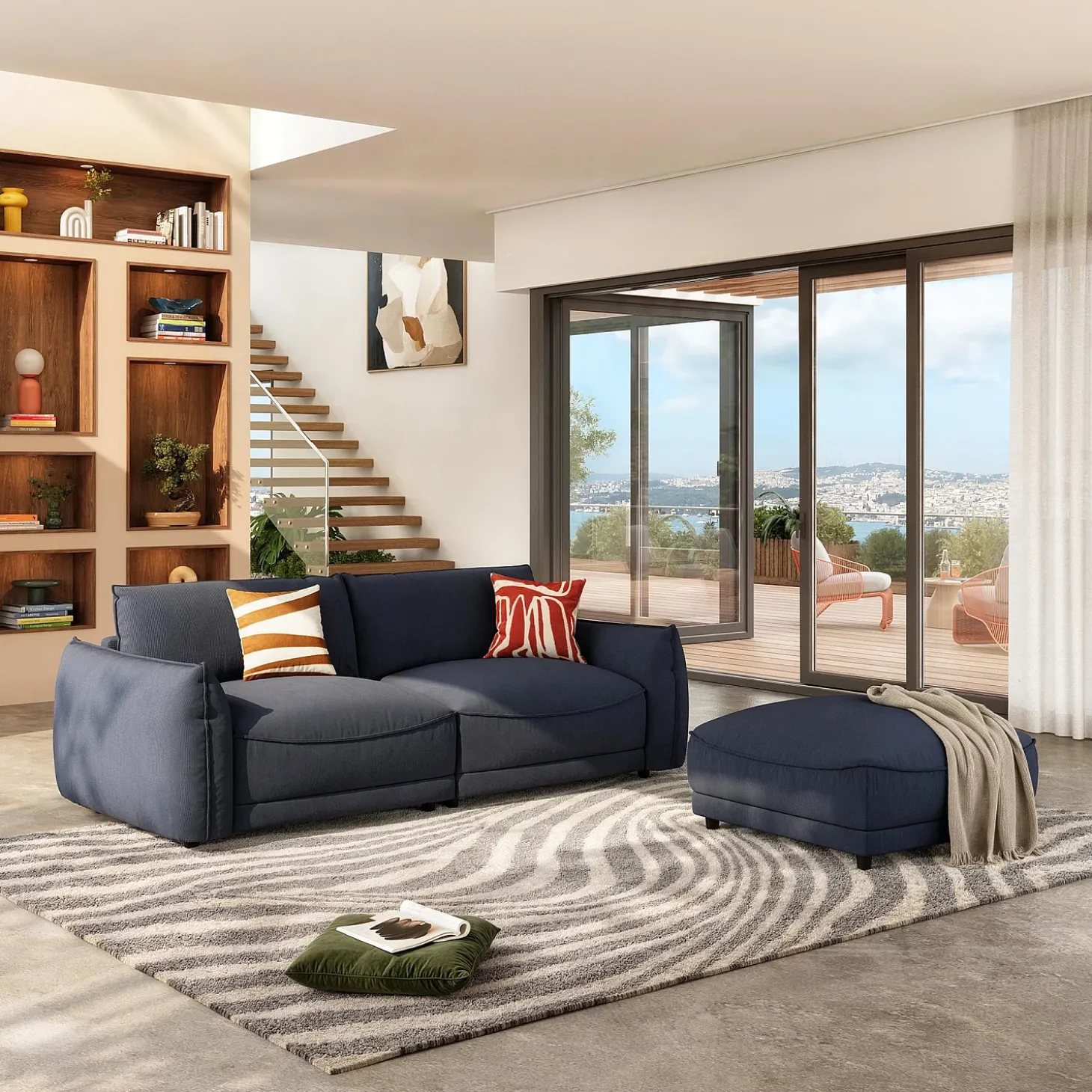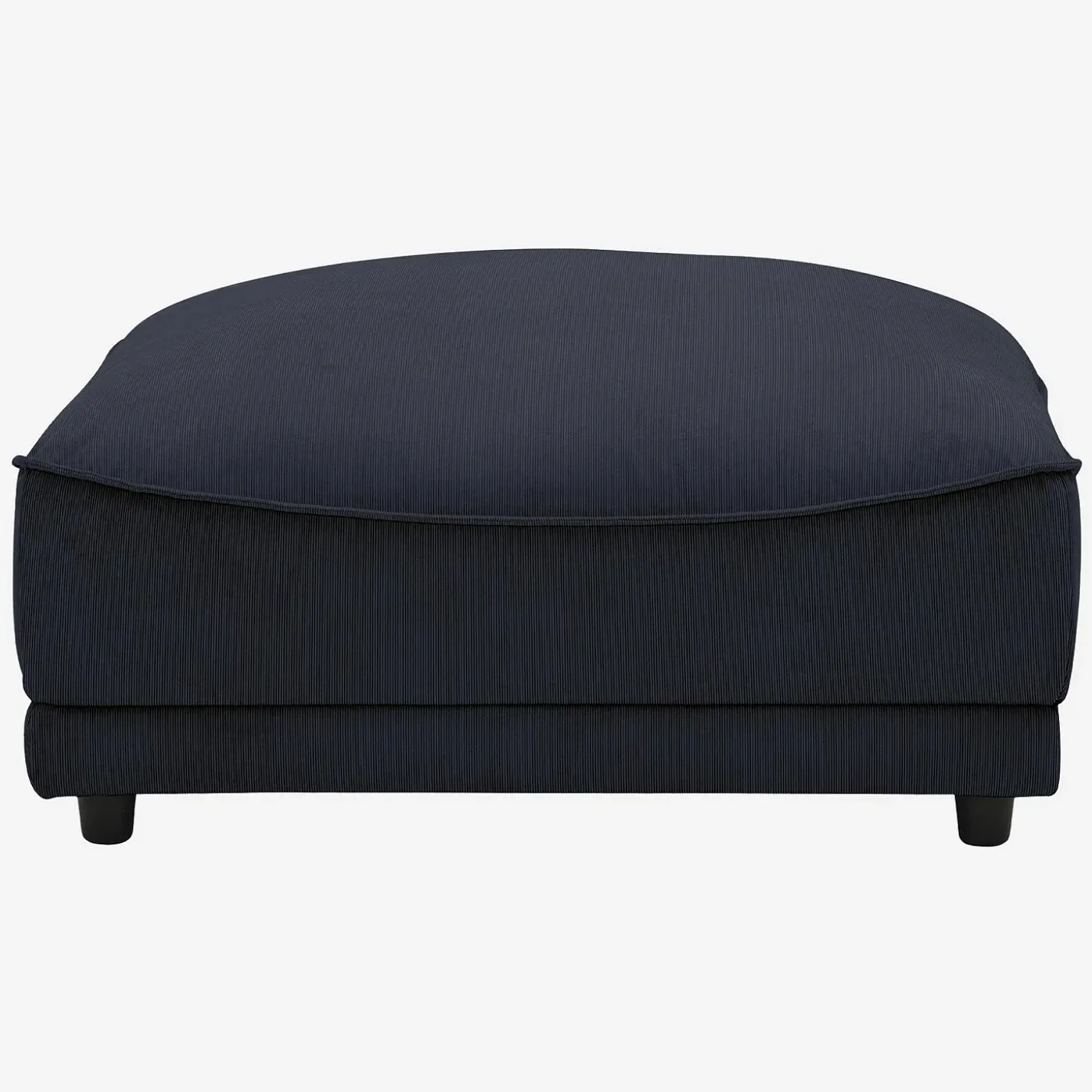 Le repose-pieds Vesta en tissu bleu marine, à la finition côtelée, est doté d’un rembourrage de mousse pour une approche pleine de douceur. Il est donc parfait pour s’étendre et se détendre en toute circonstance.