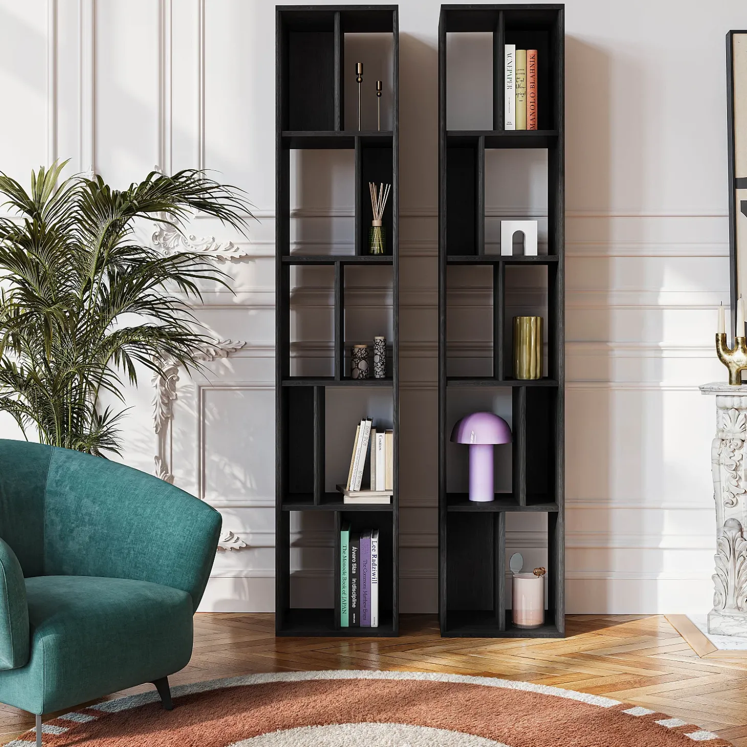 La petite bibliothèque Will séduit par sa composition graphique et son jeu de volumes.
