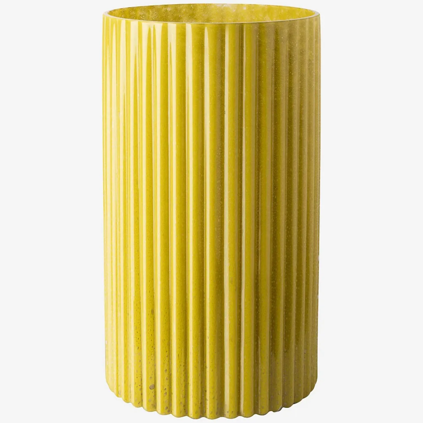 En verre soufflé bouche, ce vase est une pièce artisanale unique. Sa couleur vert olive rappelle l’été, et sa haute taille en fait une pièce remarquable dans un intérieur.
