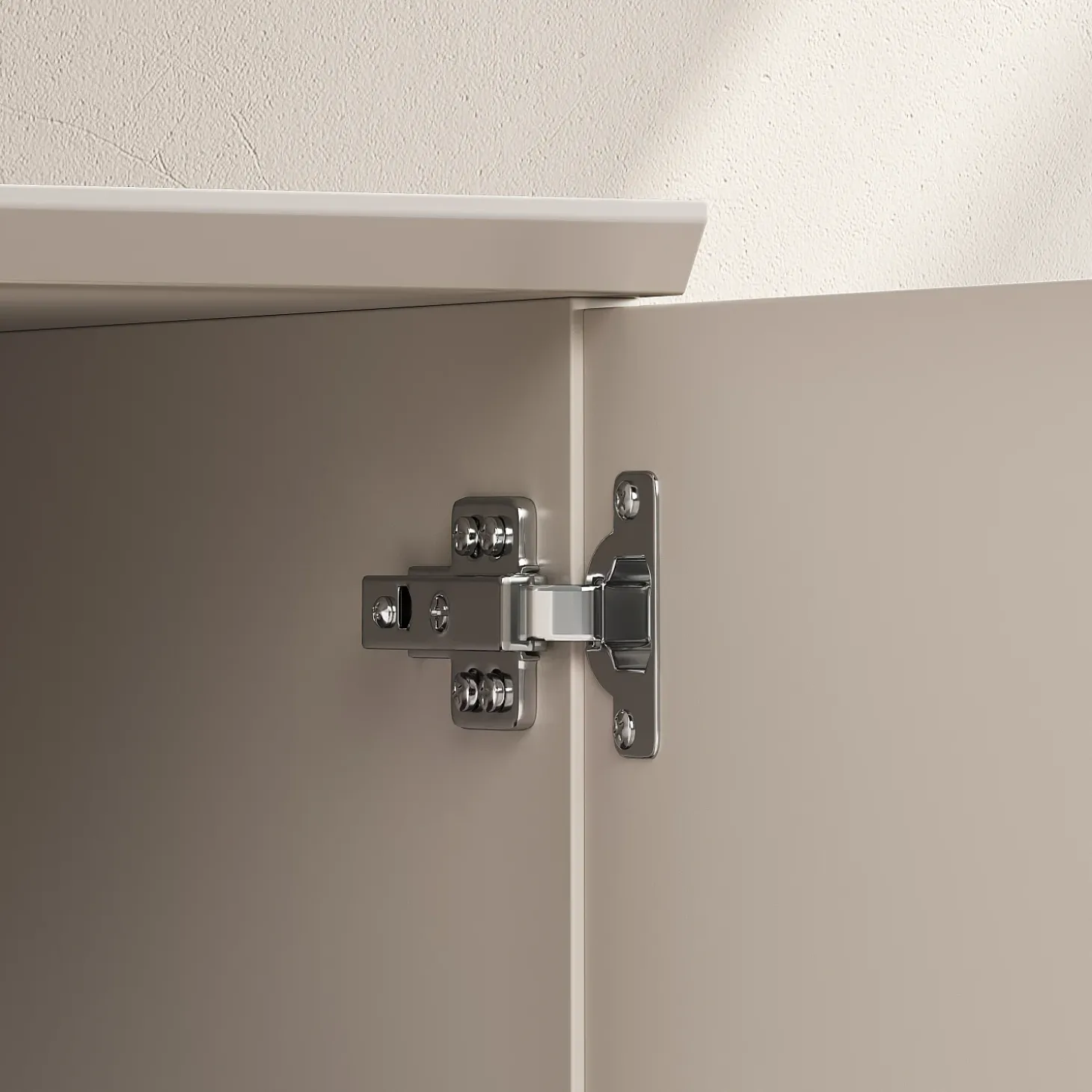 Équipé de deux portes dissimulant de multiples compartiments de rangement, il accueille aisément vaisselle, linge de maison ou objets du quotidien. Sur le côté, deux tablettes en verre trempé permettent de mettre en valeur des éléments décoratifs et de garder des accessoires essentiels à disposition.