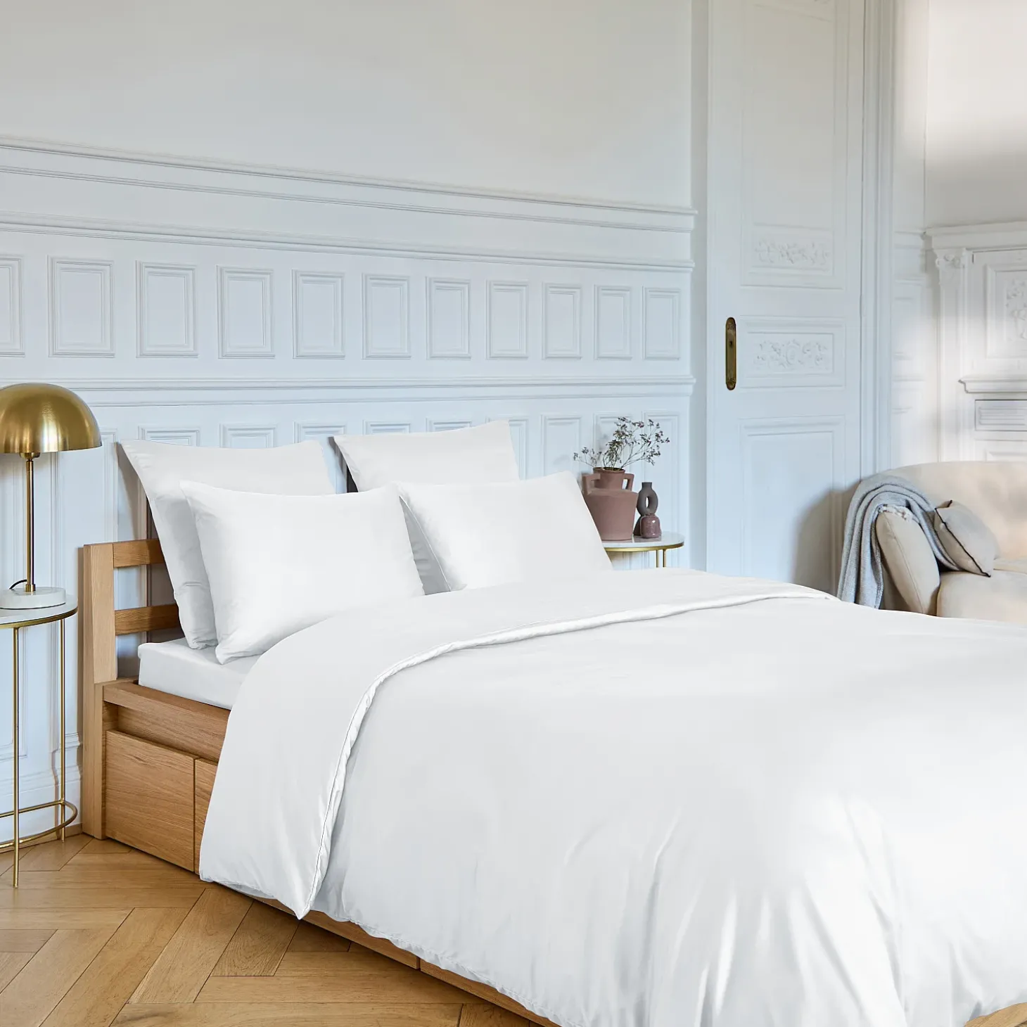 Le drap-housse Alexane 140 x 200 cm en blanc apporte une note lumineuse et douce à la chambre, tout en insufflant une touche d’élégance.