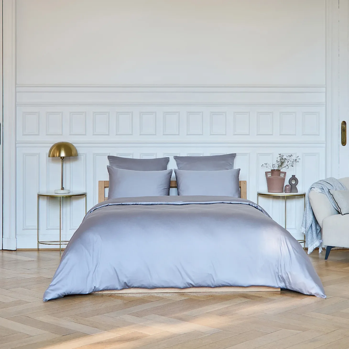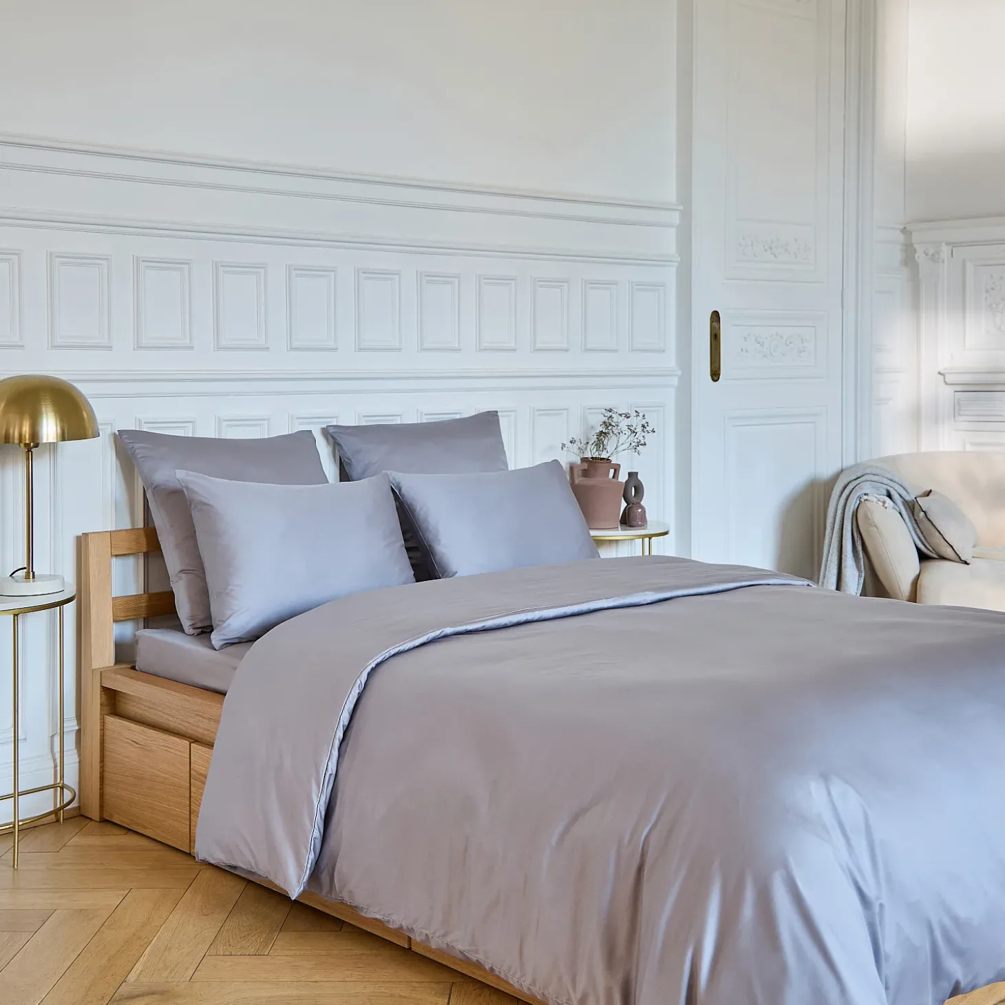 La housse de couette Alexane 240 x 220 cm en gris argenté associe modernité et sophistication. Cette teinte raffinée, légèrement brillante, illumine la chambre et crée une ambiance élégante et apaisante.