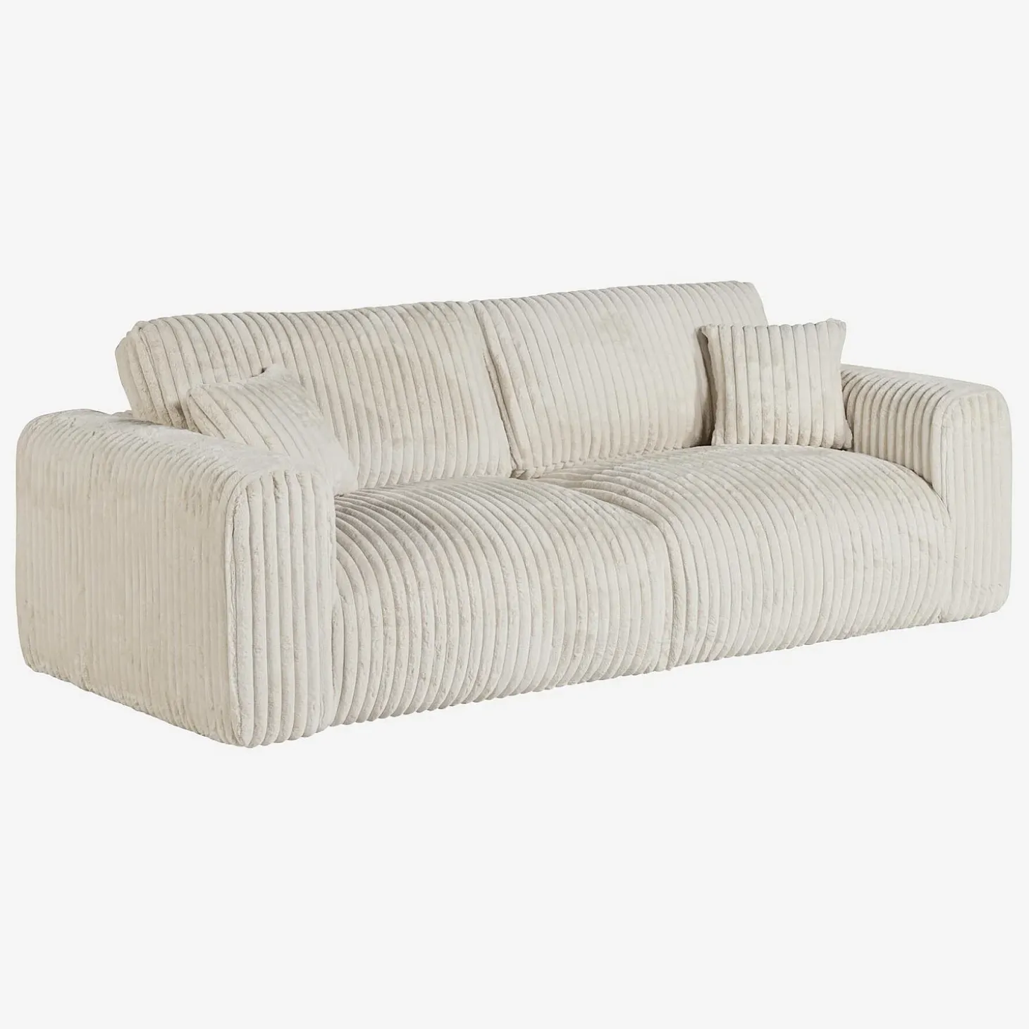 Avec le canapé 4 places Aleya, la douceur s’installe dans le salon. Se laisser envelopper par le toucher fabuleusement doux de son tissu côtelé est une invitation à la relaxation et au repos pour un moment cosy.