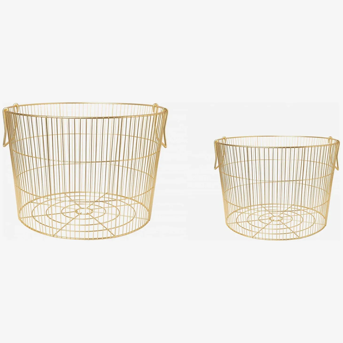Ce lot de 2 paniers de rangement Alo est fabriqué en métal, gage de solidité et de durabilité. Habillé d’une belle couleur dorée qui souligne leur élégance, ces paniers offrent de grands volumes de stockage.