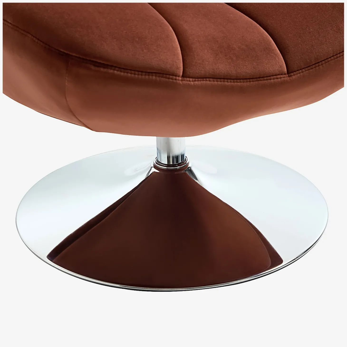 Revêtu d’un tissu velouté au toucher délicat, il incarne une assise d’appoint aussi esthétique que fonctionnelle. Sa teinte terracotta chaleureuse évoque les matières naturelles et invite à la convivialité.