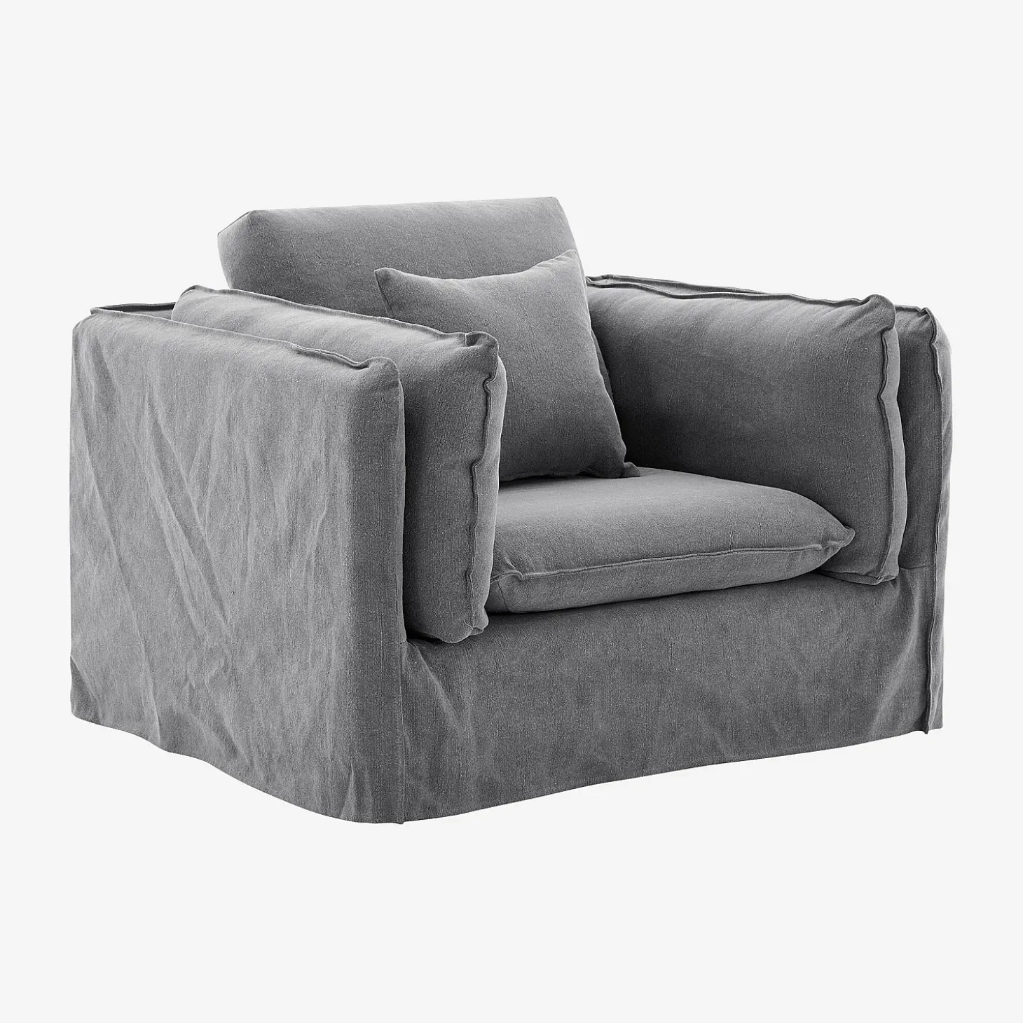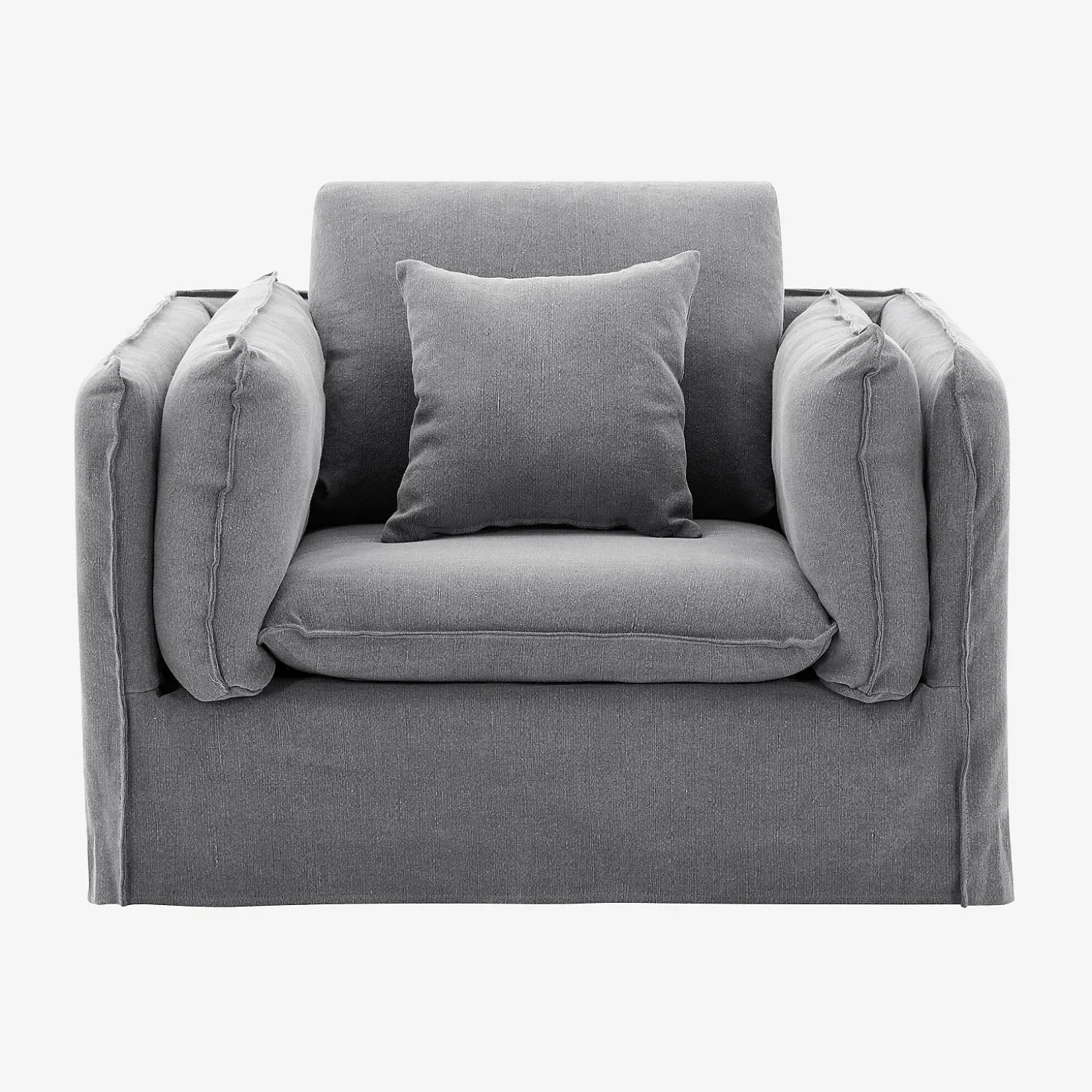 La qualité des matériaux utilisés ainsi le revêtement déhoussable rendent ce fauteuil durable et pratique. Parfait seul ou en complément du canapé de la même collection, il invite à créer un espace de détente apaisant et cohérent.