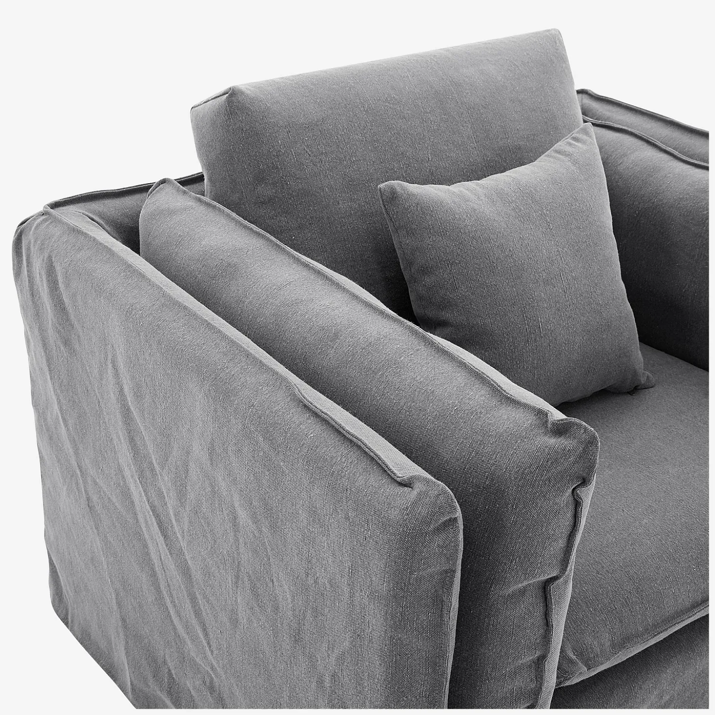 Son revêtement en lin et coton, au tissage discret, lui confère une allure sobre et authentique. Décliné dans un coloris gris ardoise, il apporte profondeur et modernité dans les différents intérieurs.