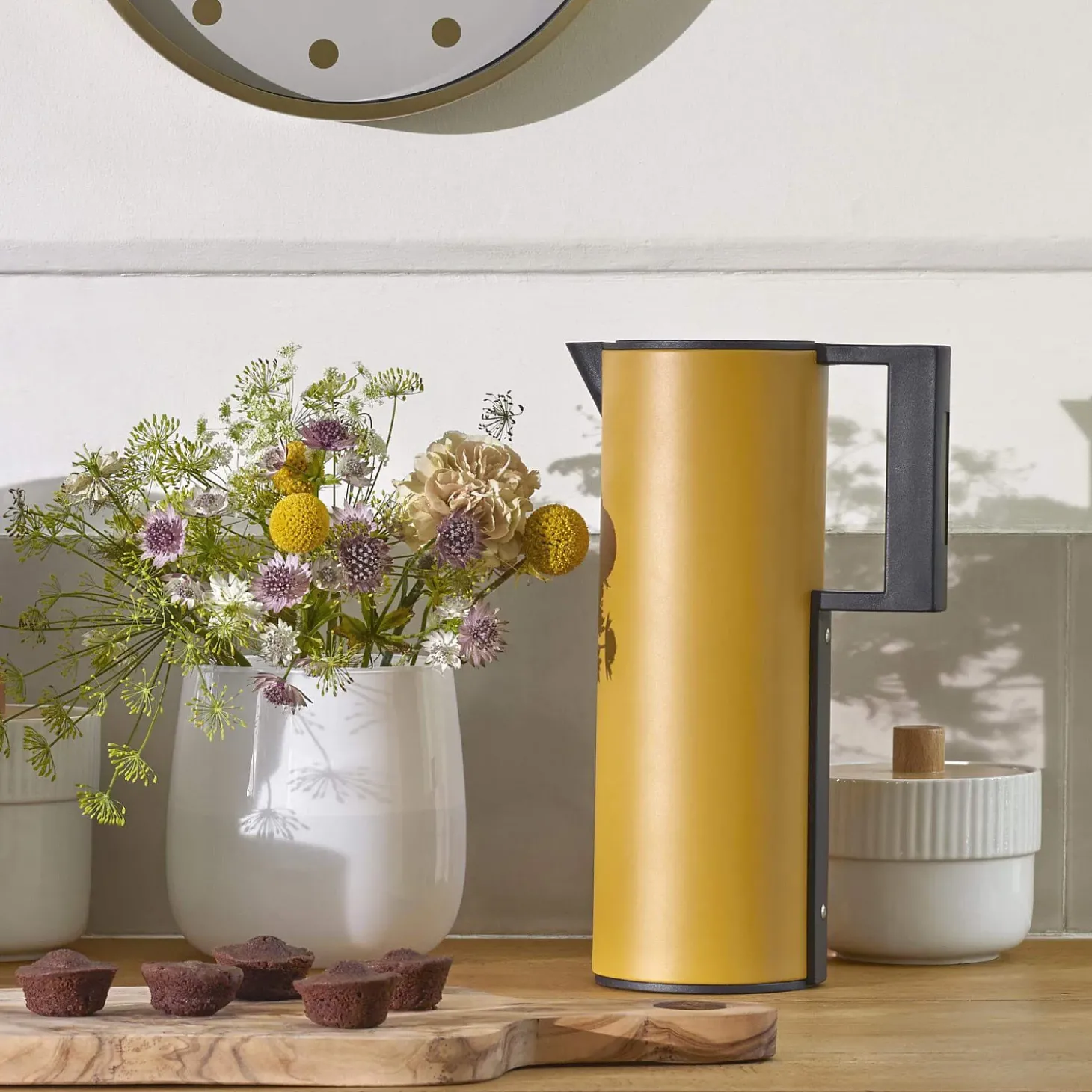 Le pichet isotherme Arabica en plastique jaune propose une contenance de 1 litre.