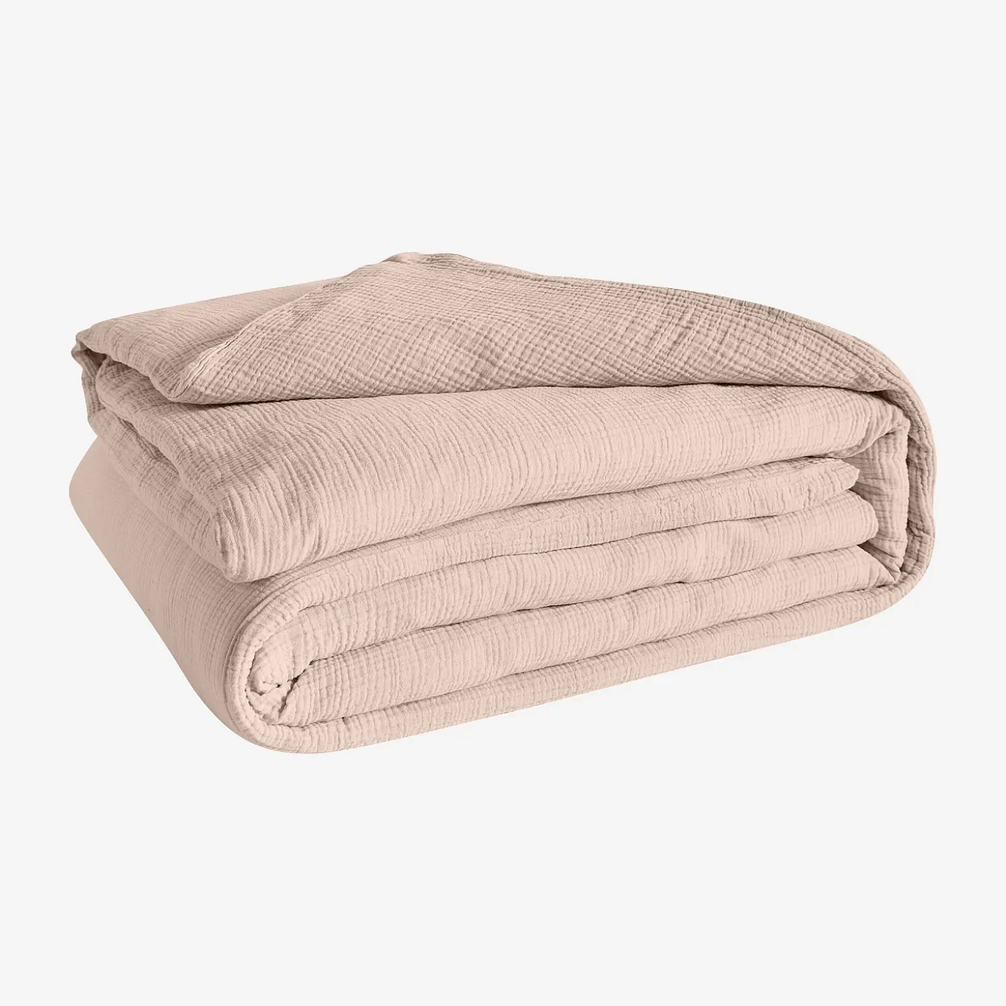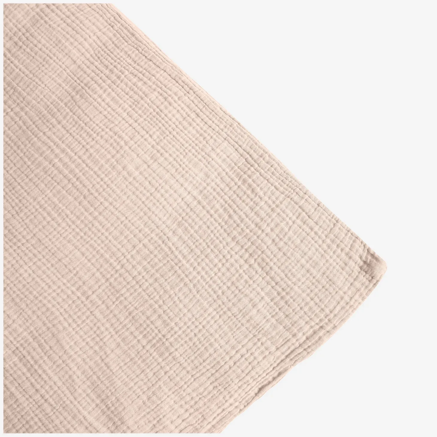 Ce coloris tendre diffuse une ambiance chaleureuse et apaisante, tandis que la texture aérienne et légèrement froissée du tissu lui confère un charme naturel.