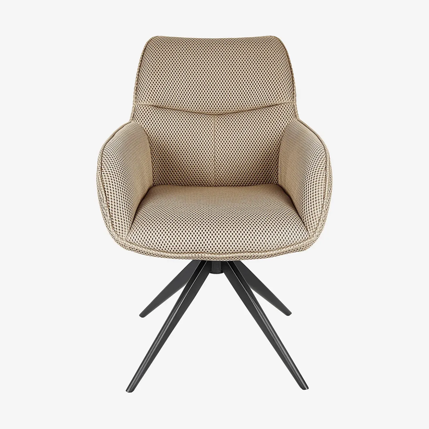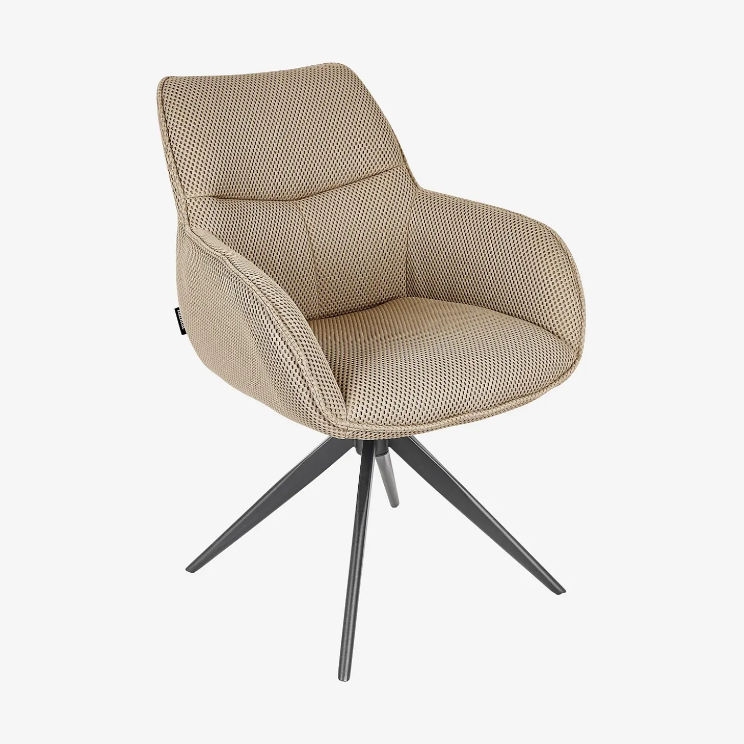 Déclinée dans un coloris beige sable naturel et élégant, la chaise Arzana est résolument actuelle, à la croisée du confort et de l’innovation textile.